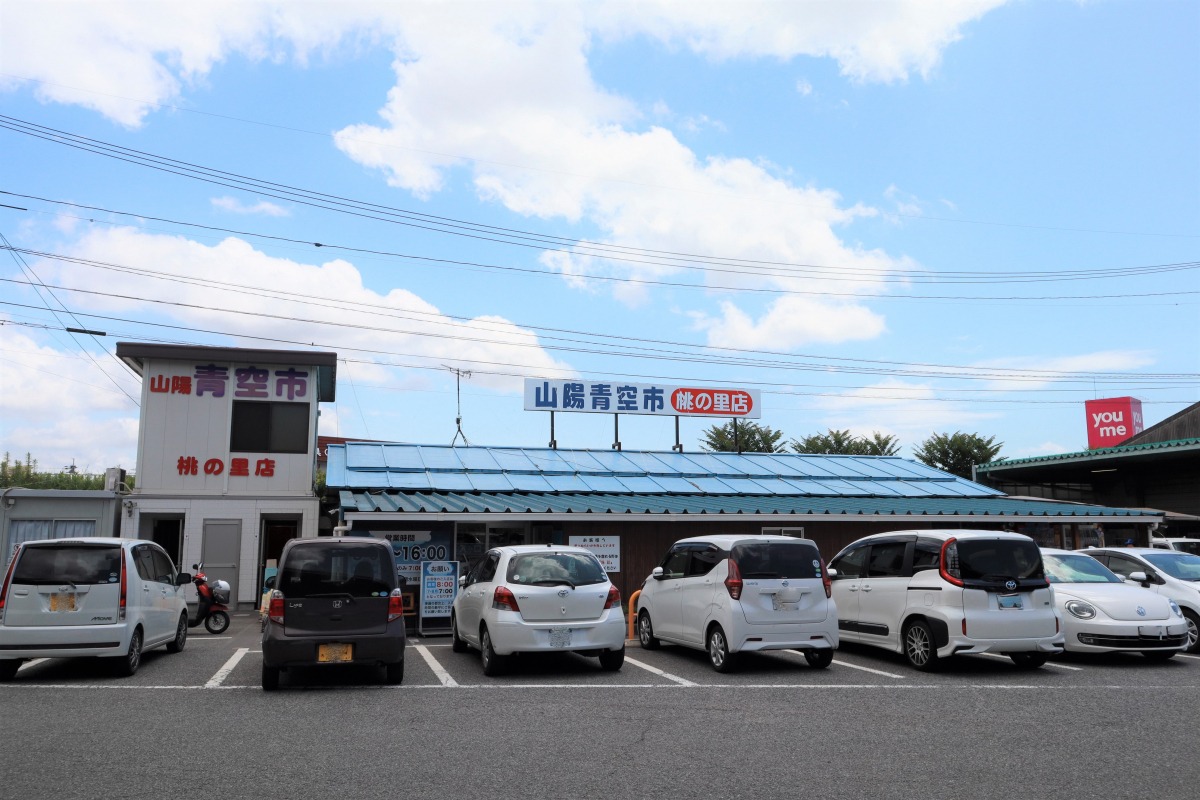 桃やぶどうなどの果物栽培が盛んな倉敷市にある、農家が直接出荷する直売所のひとつ。山陽自動車道・玉島ICからは約10分、倉敷市内中心部からは約20~30分のアクセス便利な場所にあり、市外からも来店する人が多いお店です。桃のシーズン(7・8月)は朝8時30分から営業しており、連日多くのお客さんが買いに訪れます。