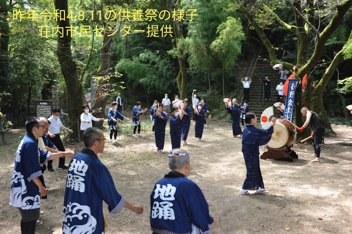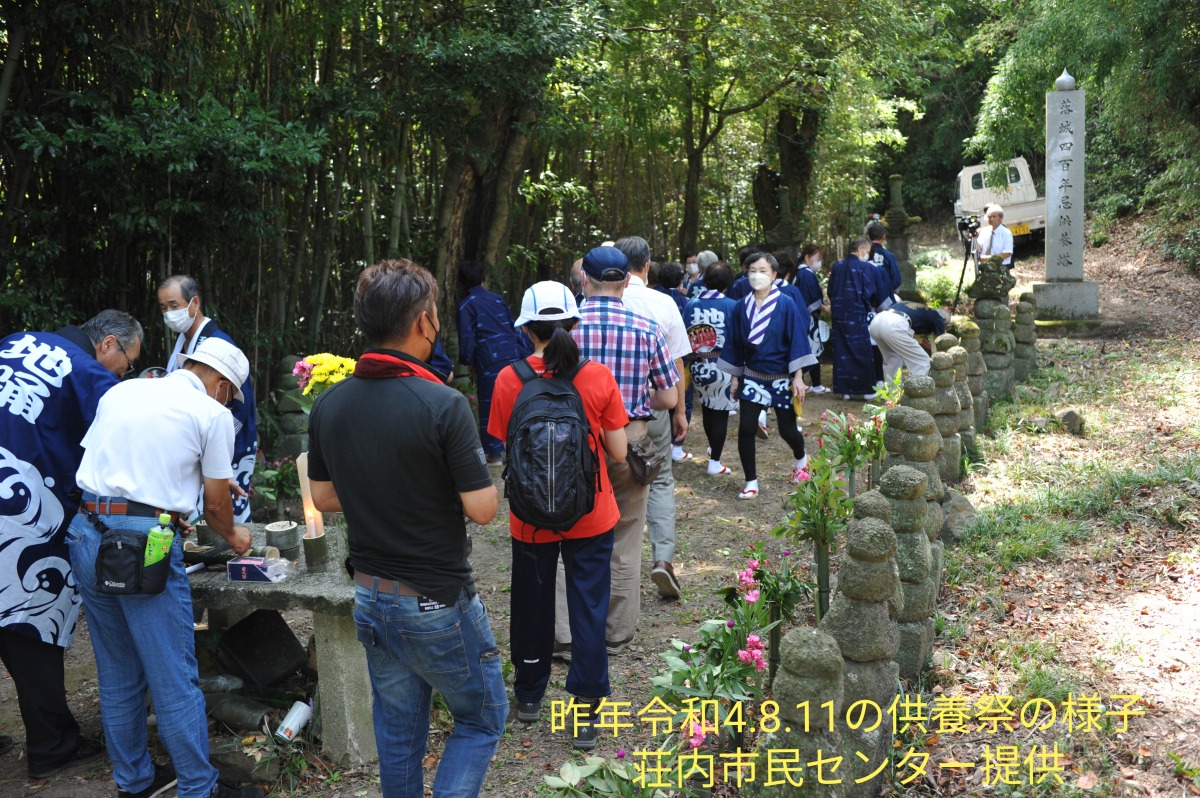 この供養祭は昭和12年に、この歴史を後世につないでいこうと有志により女軍塚を整備したことをきっかけに始まったという。宇藤木地区や荘内地区の地元住民の方々や玉野地踊保存会のメンバーが集まり、今年で49回目の供養祭となる。