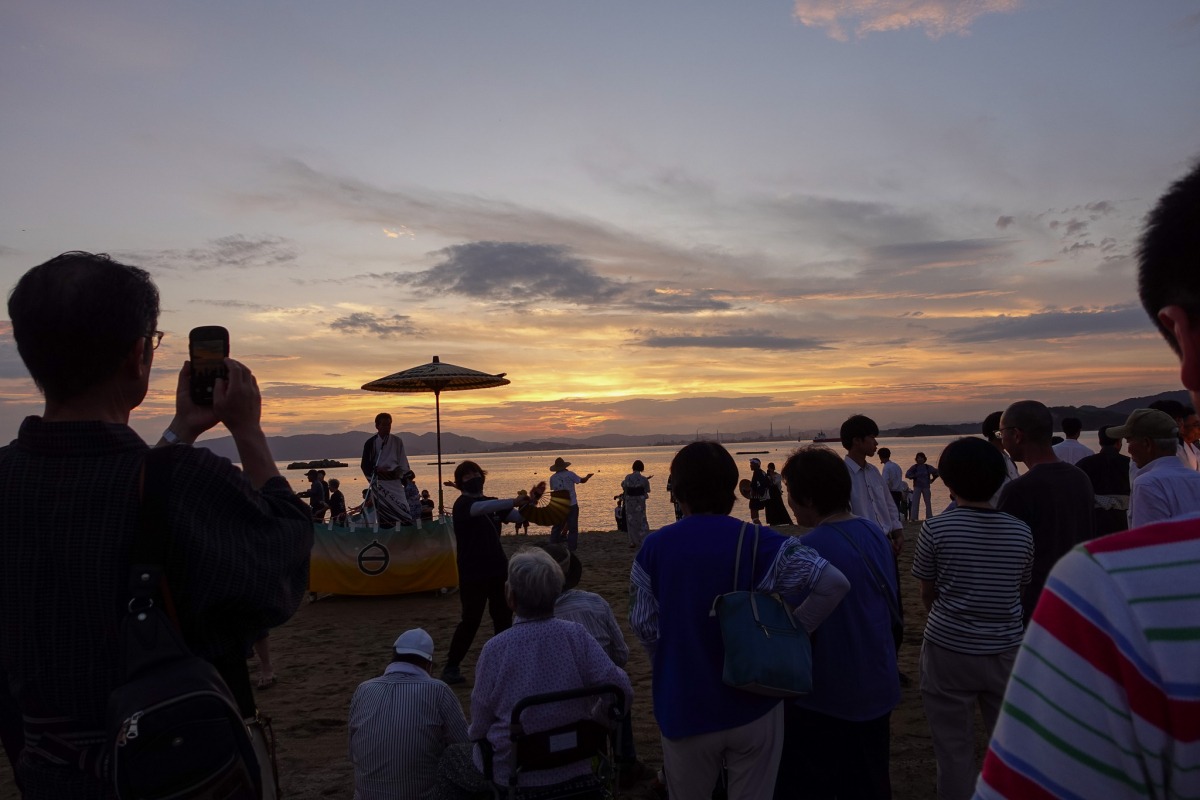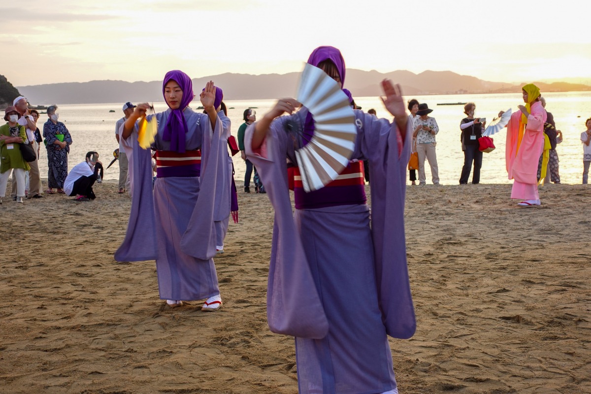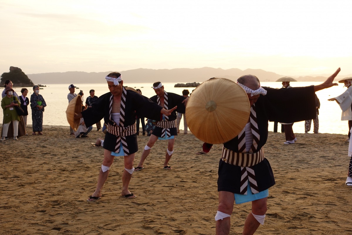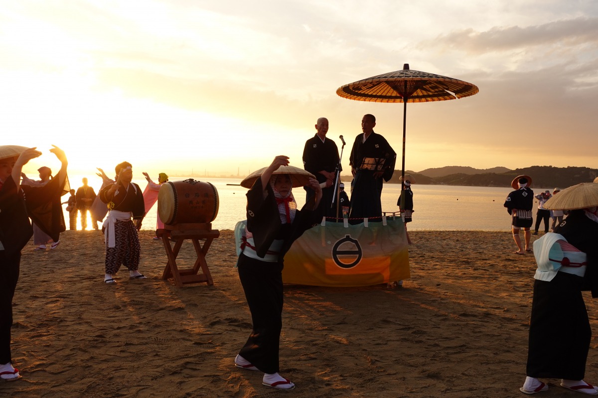 海と夕陽の輝きに照らされて、優美な「白石踊」を楽しみました。