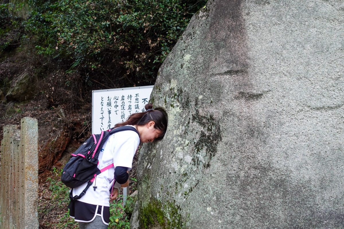 岩のくぼみに額を当てて願い事を3回唱えると願いが叶うそうです。