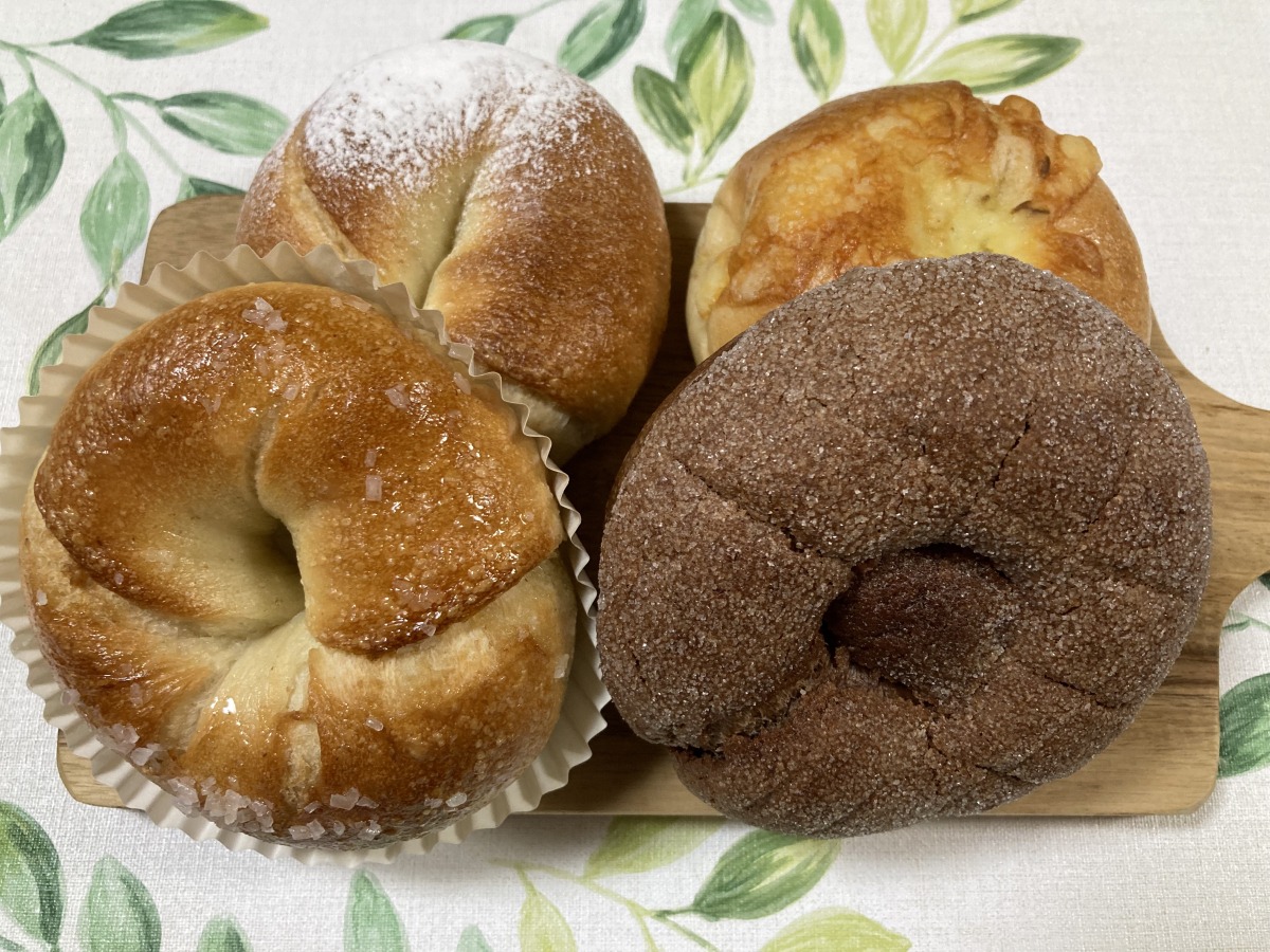 家でトーストすると、外はカリッと、中はもっちりした味わいで、特にベーグルとシュガーバターのパンが、ふんわり甘くてバターのリッチな味わいで個人的にお気に入りでした。