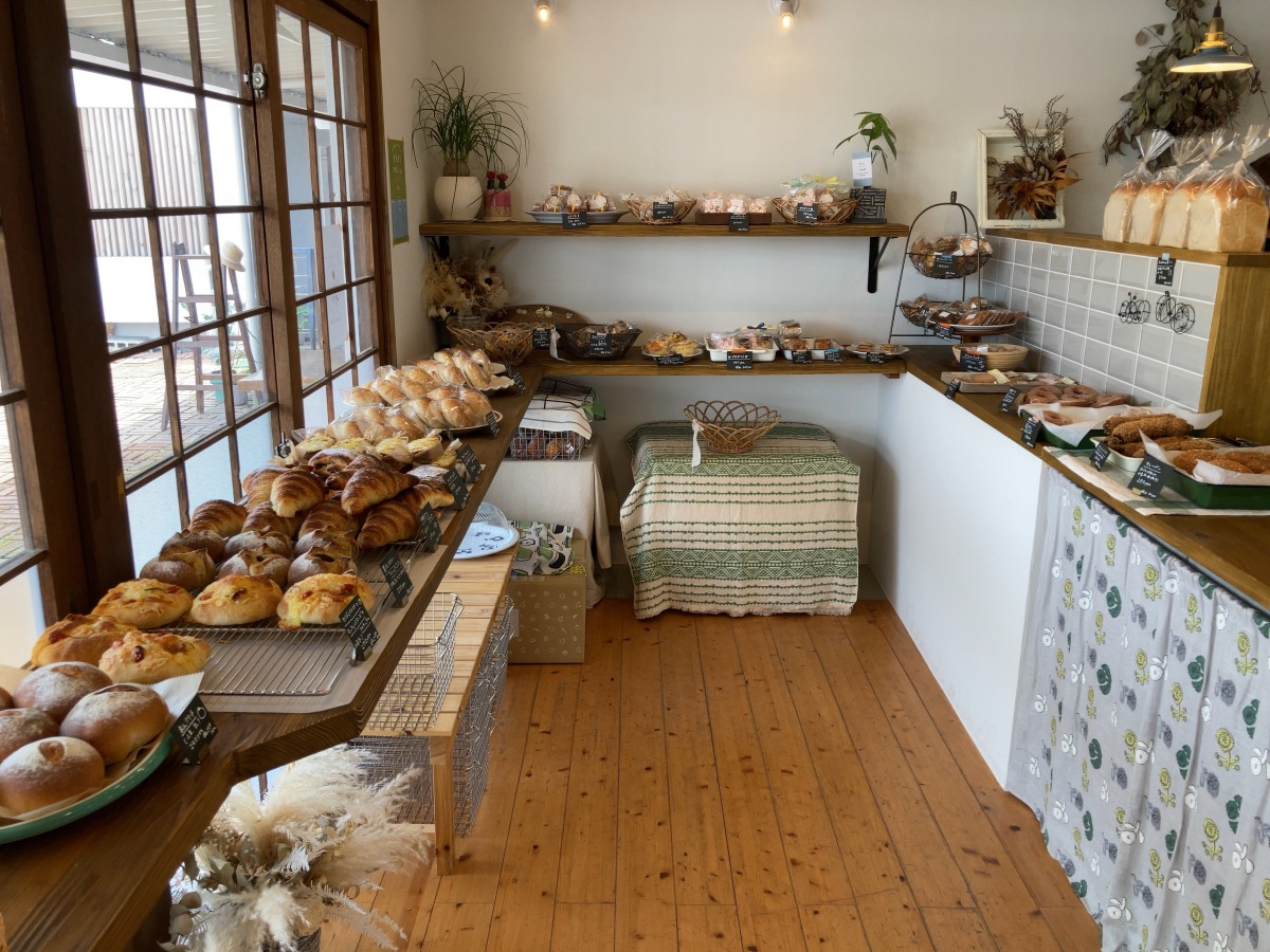 畑や田んぼが広がる中、突然現れるオシャレな建物がそのお店です。車の中からでも、その美味しそうなパンの香りが漂ってきます。