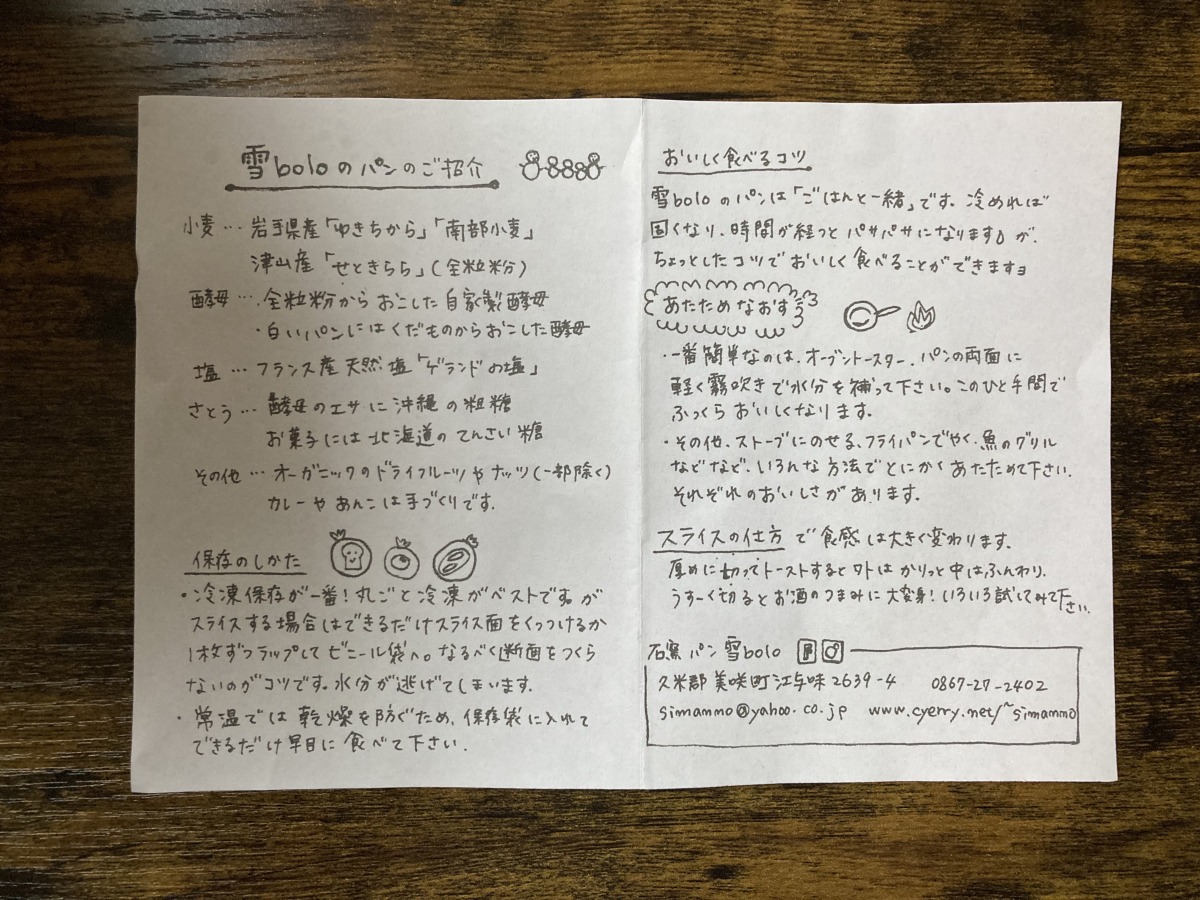 そうしたパン作りへの丁寧な想いが、この手書きの案内からも伝わってきます。