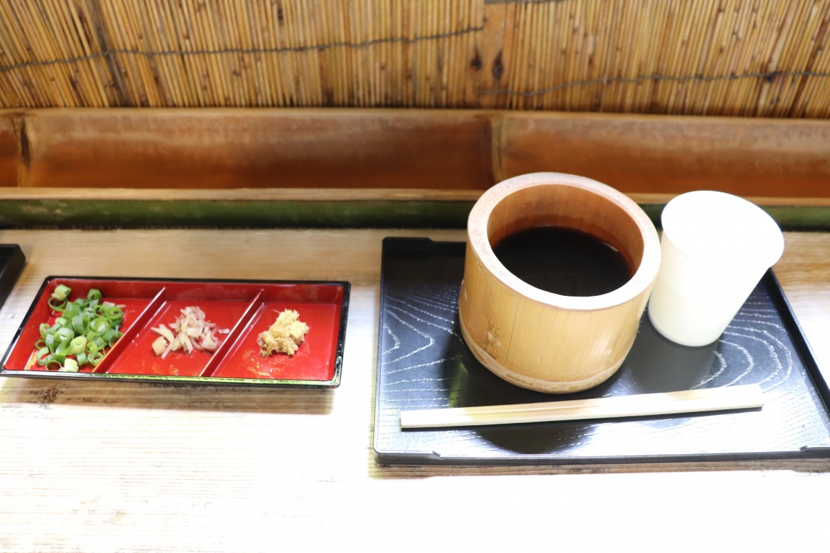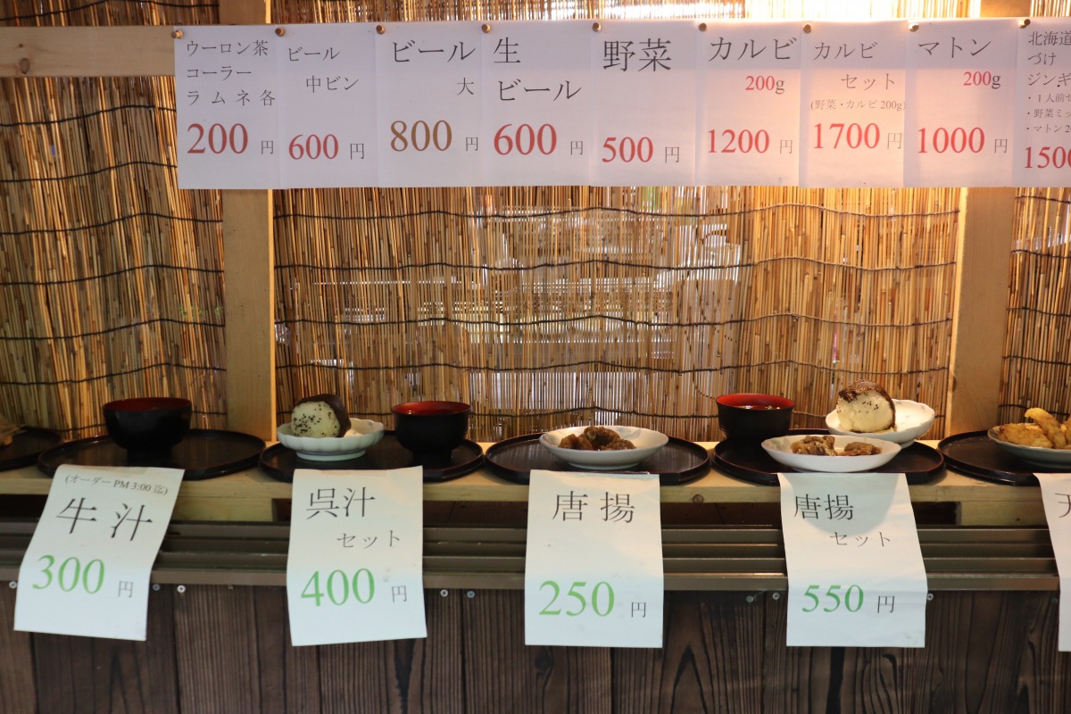 ここは、流しそうめんが有名ですが、ジンギスカンBQQもあり、サイドメニューは天婦羅やおにぎり、わらび餅のデザートまで選べるようになっていました。流しそうめんは600円とお手頃価格です。天婦羅もオーダーしてみました。