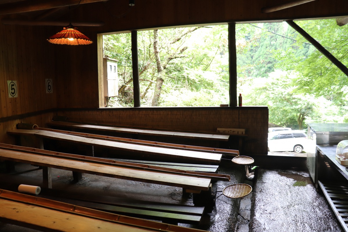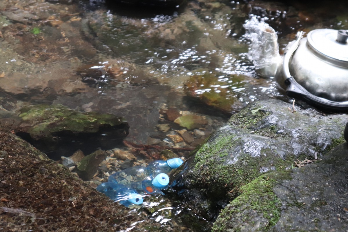宮川の支流、横野滝の二の滝がすぐ近くにあり、冷たくてきれいな天然水が豊富な水量で流れていました。その天然水を使って、流しそうめんが頂けるということでさっそく行列に並びました!