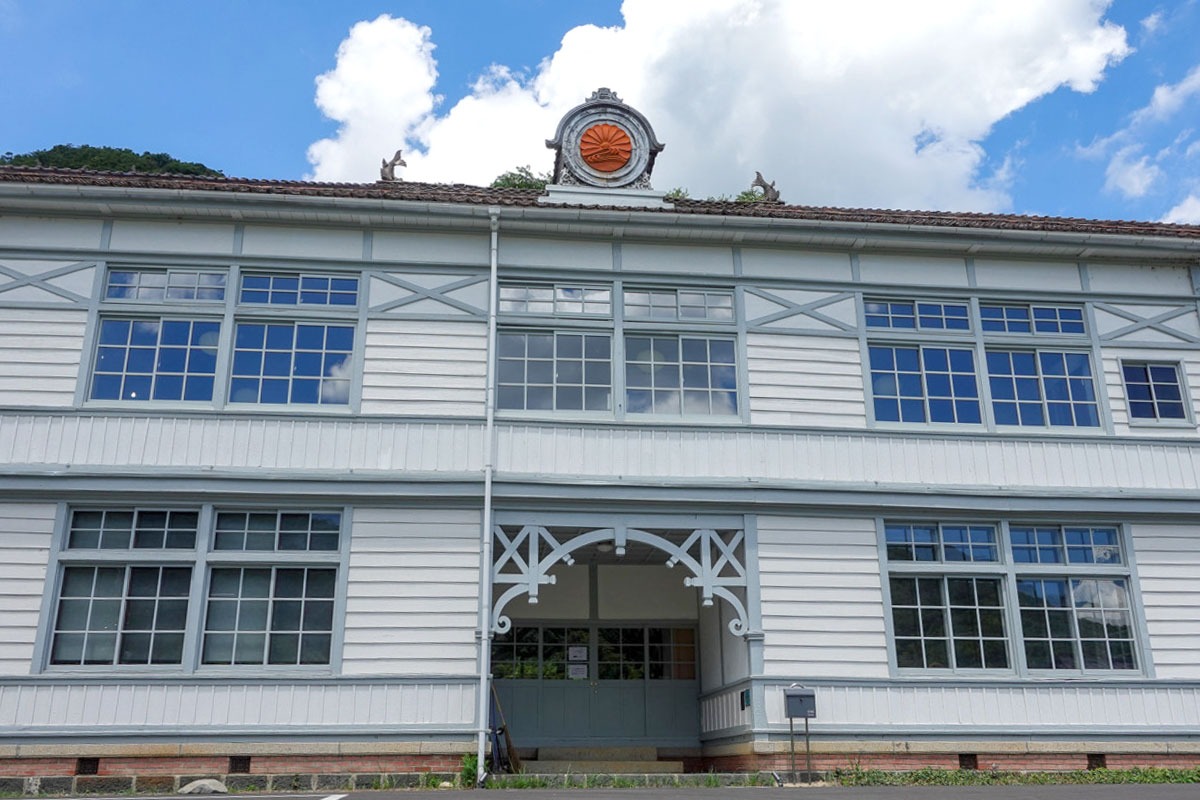 1910年に現在の久米南町に赤坂尋常高等小学校(現、誕生寺小学校)の校舎として建築され、1973年に現在の場所に移築されました。