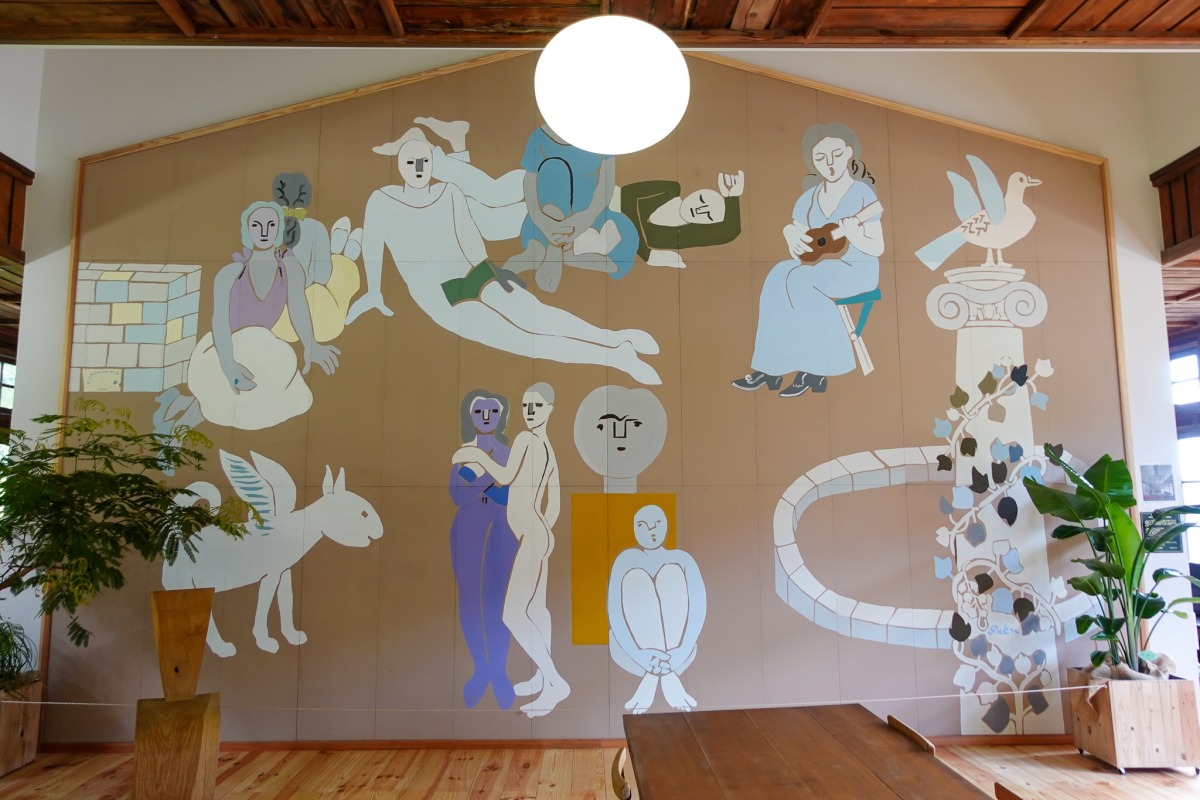 2階にあがって、一番に目に飛び込んでくるのが、この壁画です。