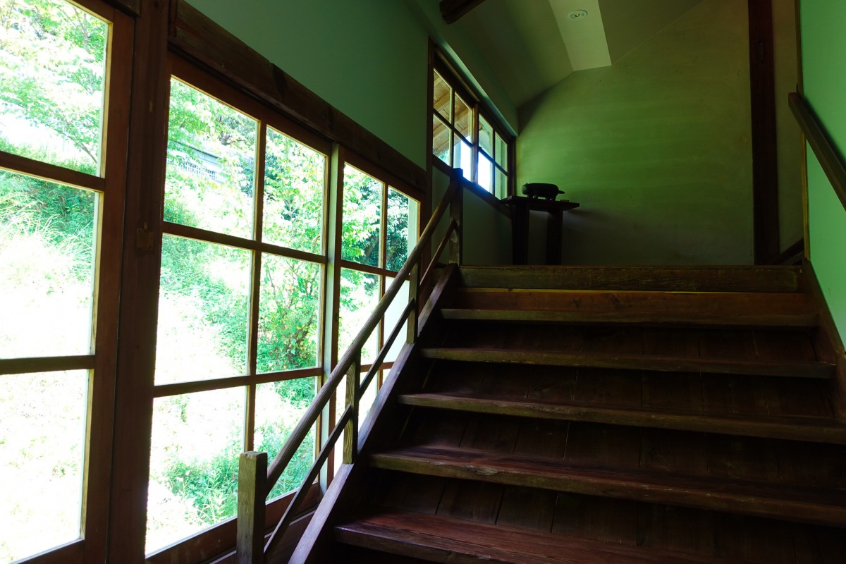 2階にあがる階段やてすり、天井などは古い校舎のままで利用しています。