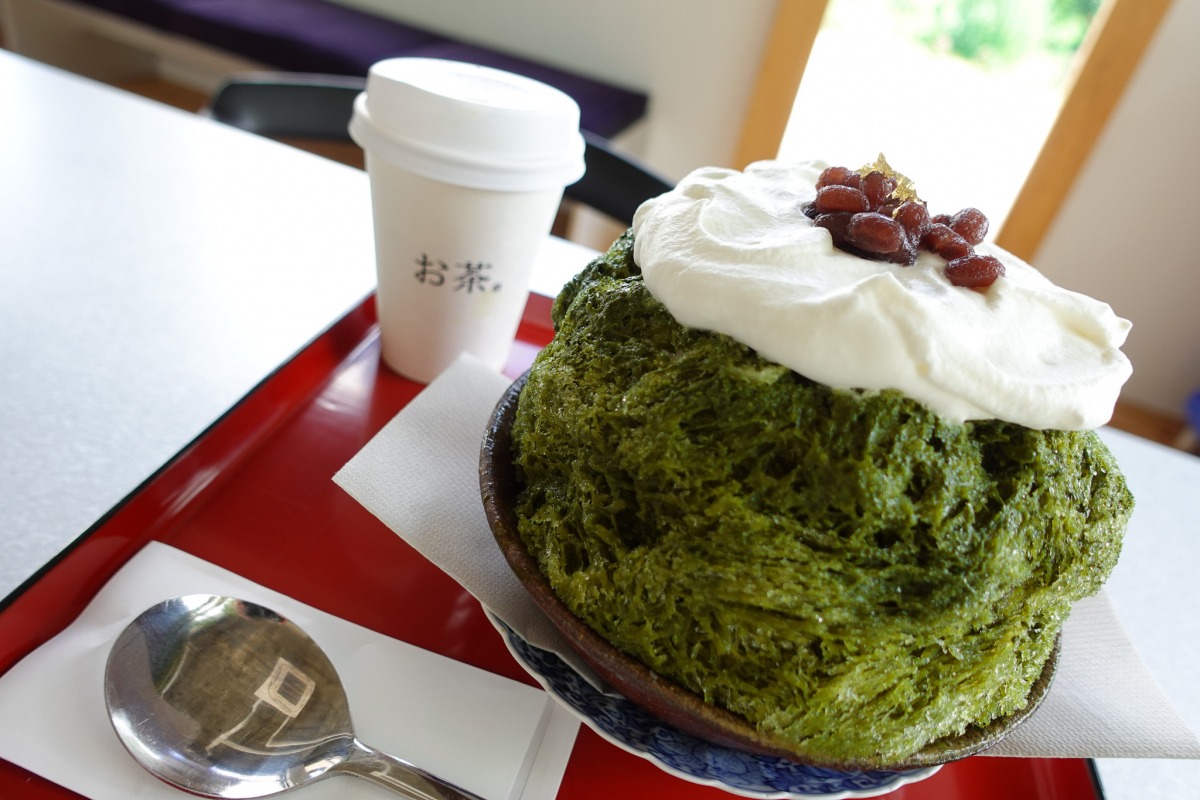 かぶせ茶を粉末にした、色も味も濃い、さすがお茶屋さんのかき氷です。