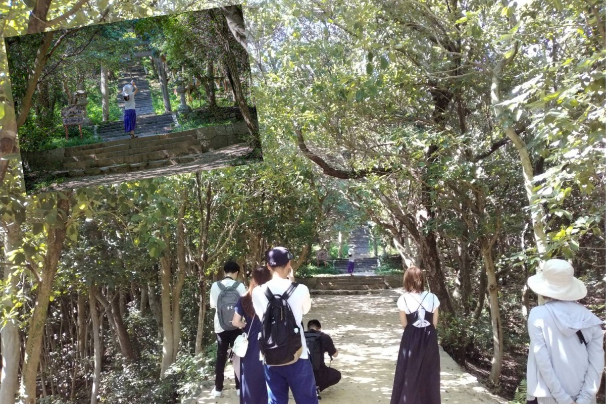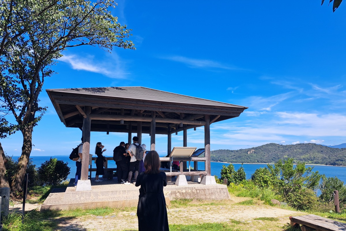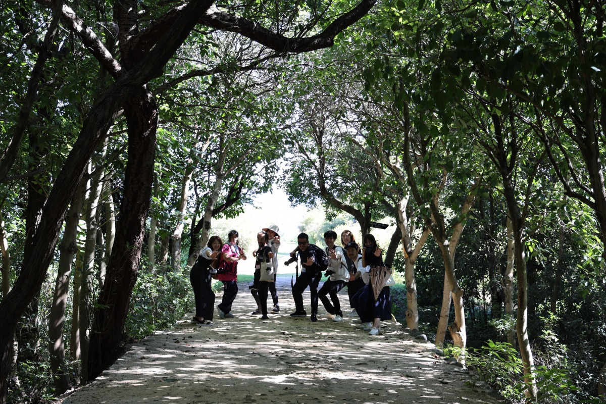 木のトンネルのような参道や、見晴らし抜群の展望台が撮影レッスンの場所になりました。それにしても、牛窓の海と空、青い!!