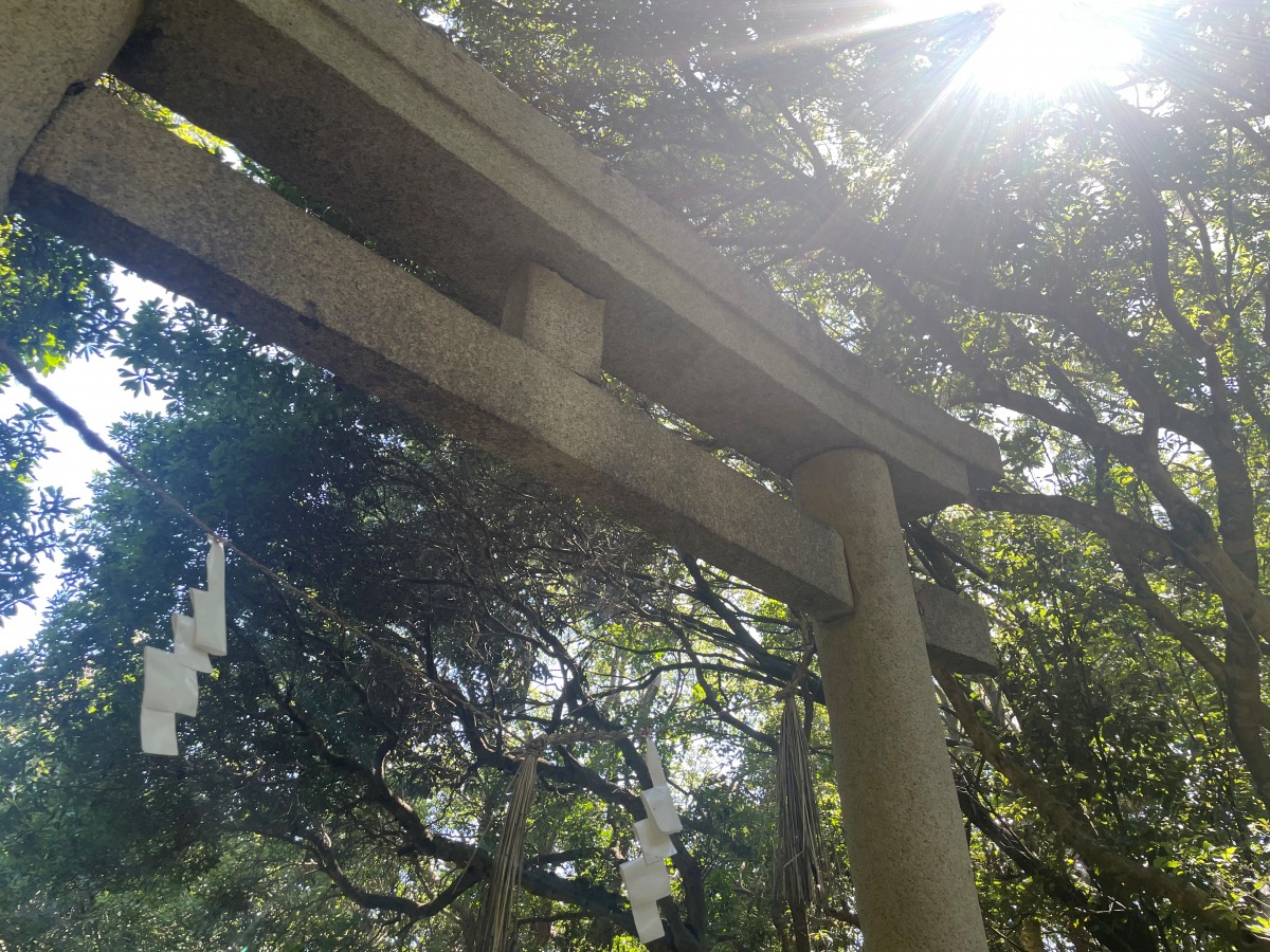 【ライター松原さん撮影】対角線構図で、鳥居の全体ではなくあえて一部を捉えつつ太陽の光を入れた分、雰囲気のある素敵な写真になっています。