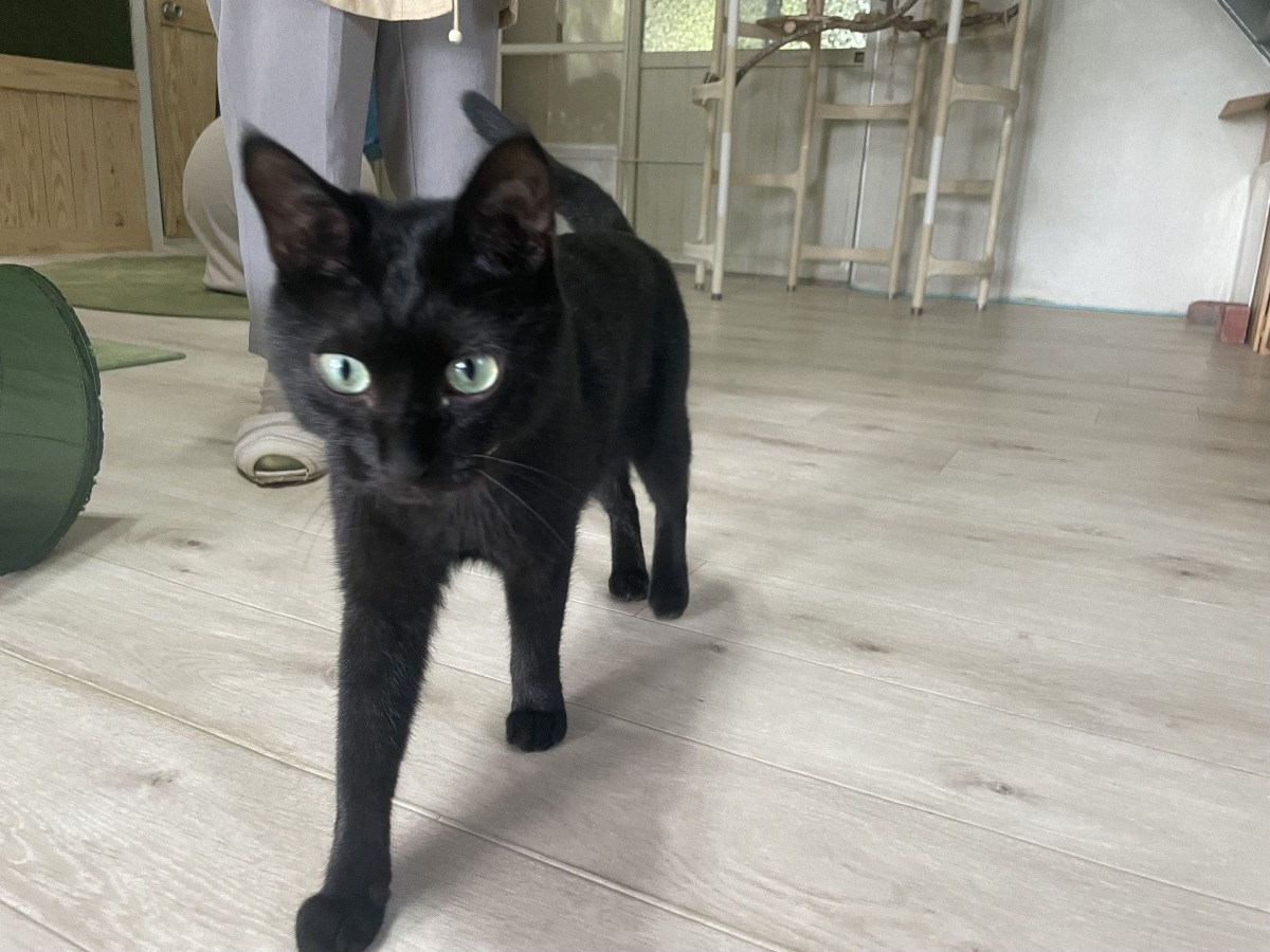 瞳が本当に綺麗で写真だと光の加減の様にも見えてしまうかもしれないので、ぜひ実際に会いに行ってみて欲しいです。ピンクの肉球もとても可愛い。