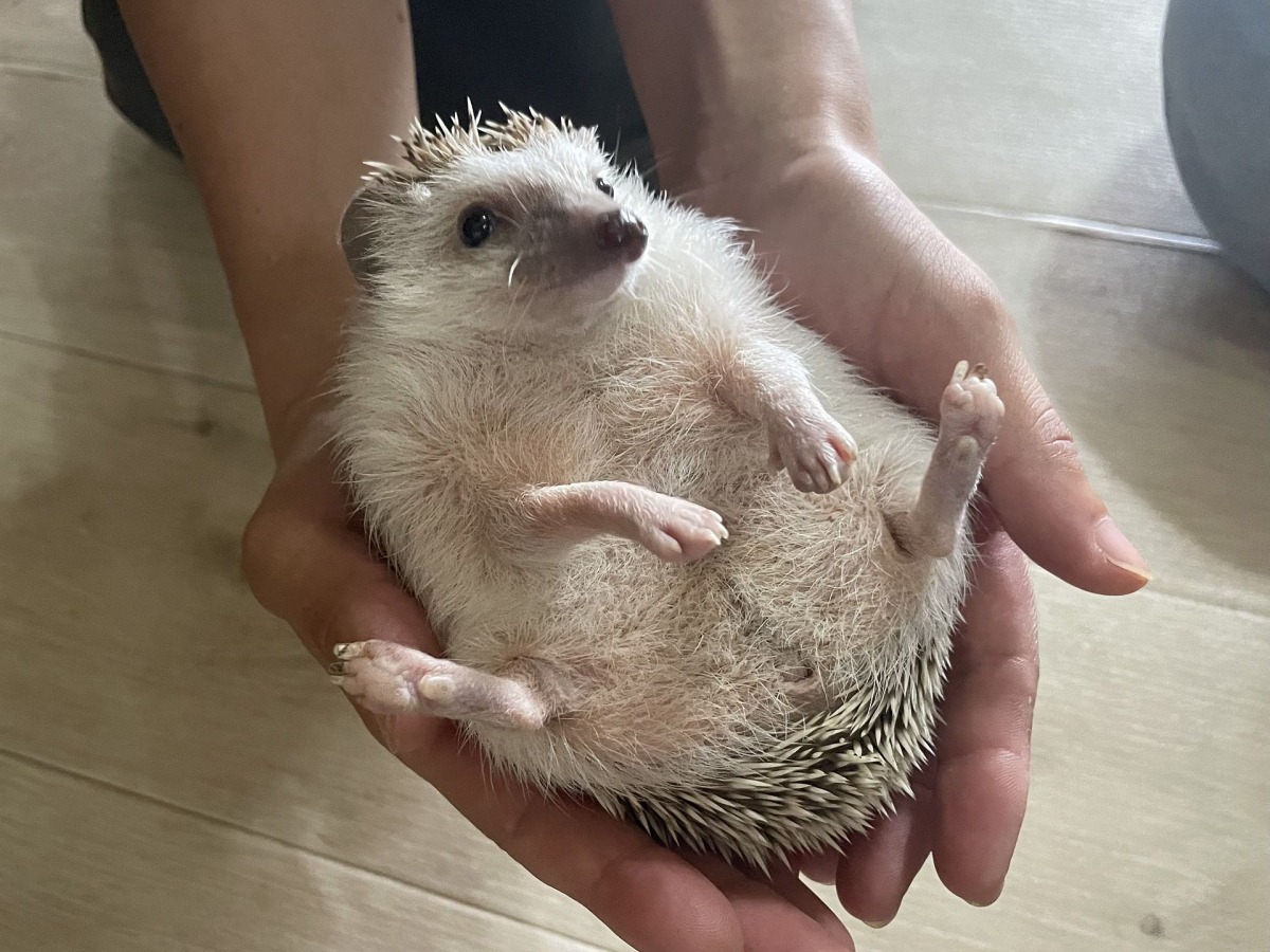 凄く可愛い。触り心地は落ち着いているときは、固いけど痛くはない毛並みで、警戒すると固くなり、丸まると一番固い状態だそうです。どのくらい固くなるのかも少し気になります。
