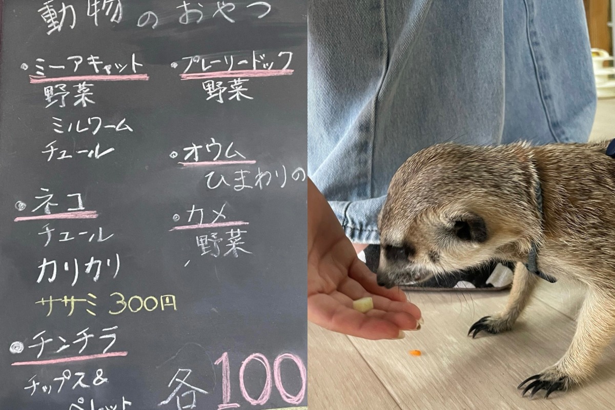 今回は、ミーアキャットに野菜のおやつをあげました♪