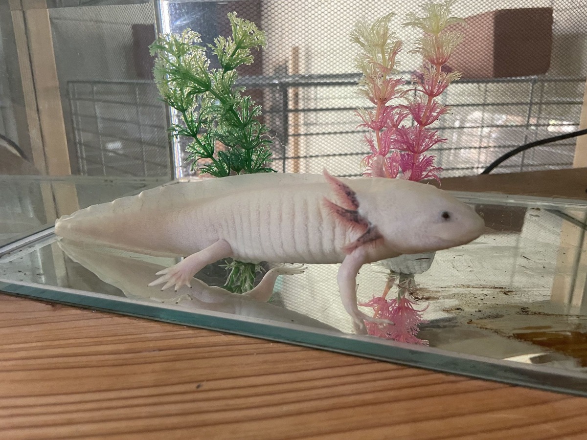 ウーパールーパーはカエルと同じ両生類で、気の抜けたような表情や手や足の指が可愛い癒し系の生き物です。