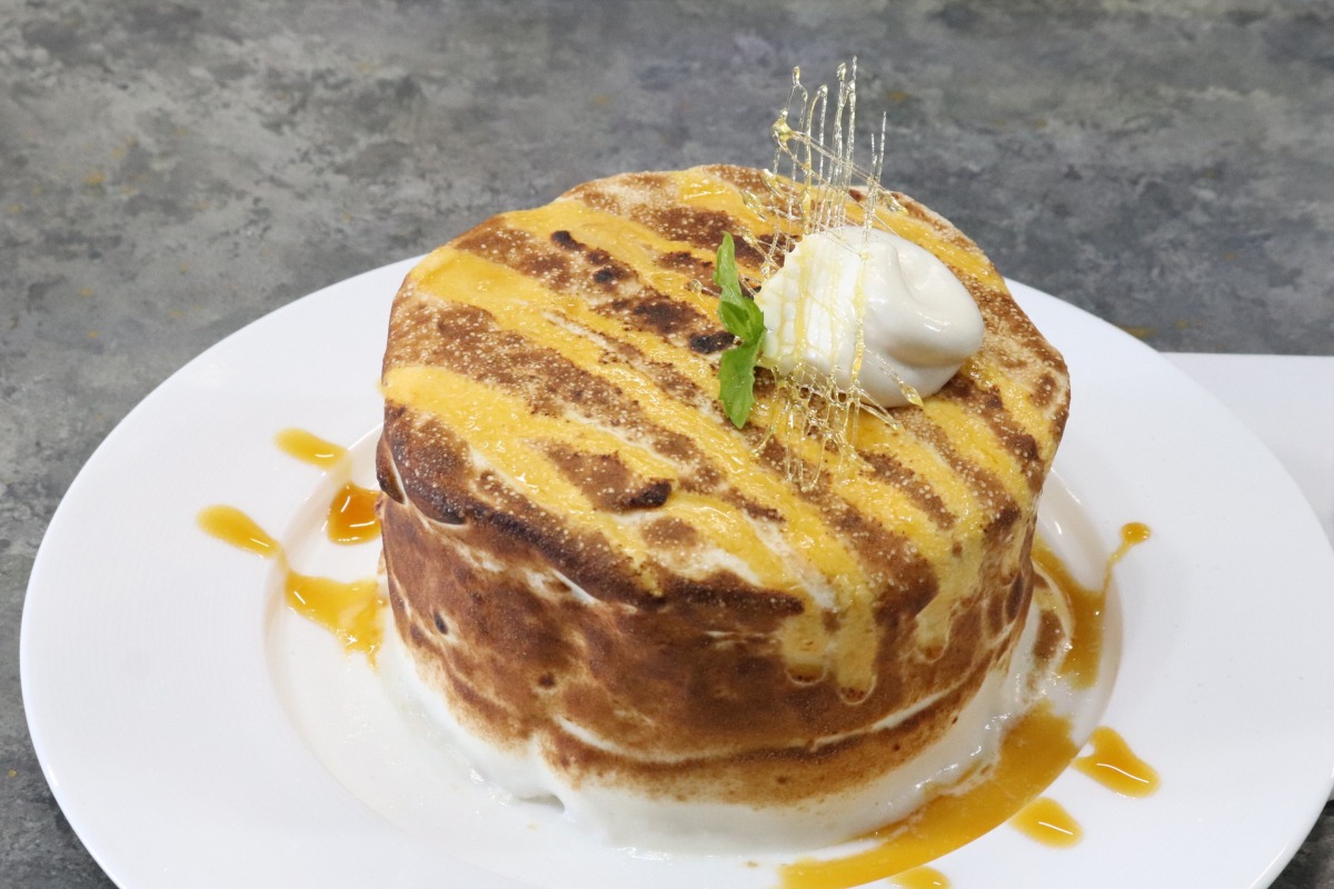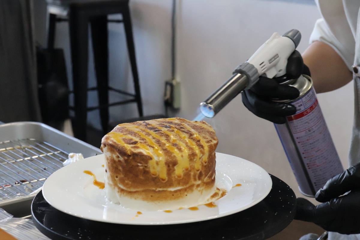 直径12cmのケーキ型で作られたかき氷は、クリームでコーティングされ、約14cmサイズになって運ばれてきました。一瞬、一人で全部食べれるか不安になりましたが、全く問題ありませんでした 笑。 バーナーで炙られたブリュレは、香ばしくてカリッとした食感でした。ブリュレの下には、層ごとに味の違うシロップが浸み込んでいて、下に行くごとに味が変化する楽しみがありました。中の層には食感が違うものも入っていて、飽きることなく探求できました。層ごとに違う味ですが、一緒に食べるとまた違った味になり、ワクワクしながら食べ終わりました。かき氷の概念が全く変わりました! そして、食後に出される温かいお茶がとても美味しいのです。