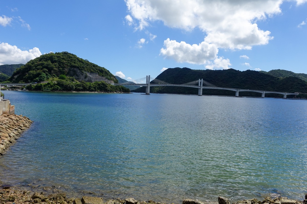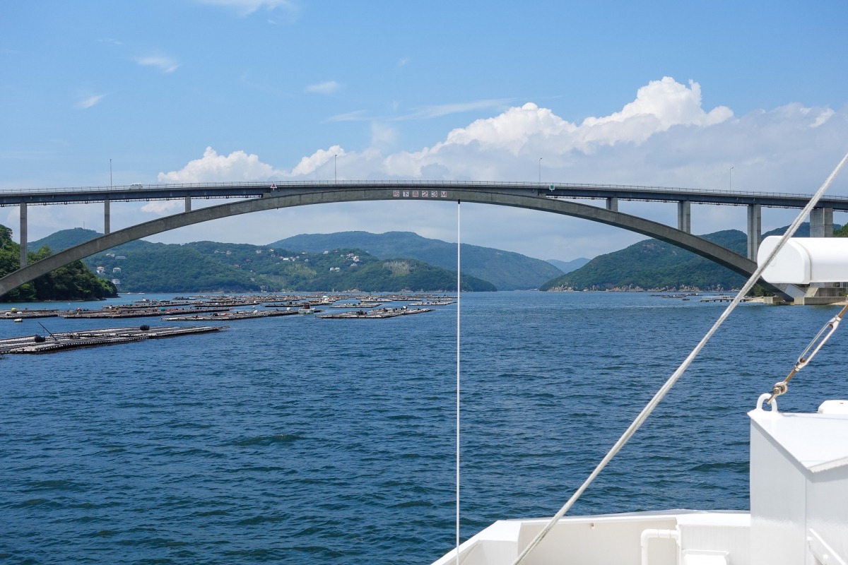 頭島と鹿久居島を結ぶ、300mの頭島大橋が見えてきました。
