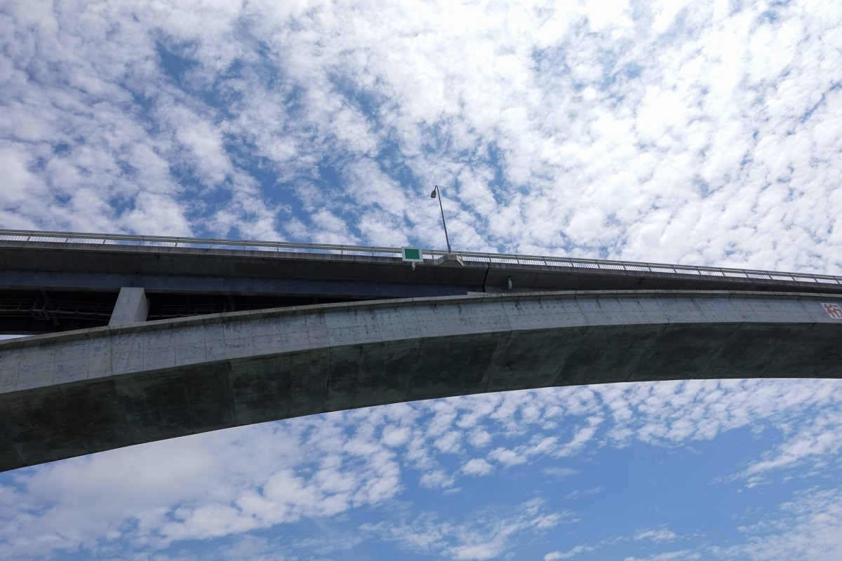 下から見ると、橋はびっくりするほど高くて、きれいなアーチを描いていました。