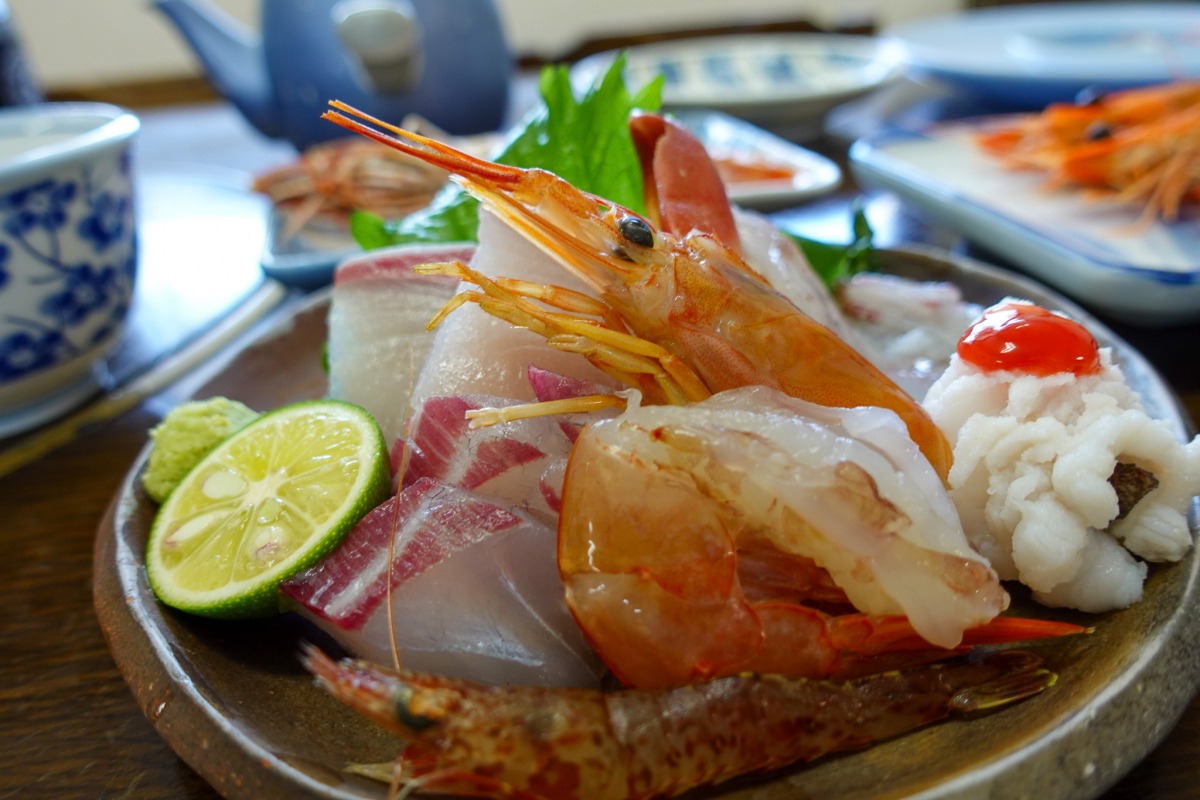 岡山県観光連盟が2023年4月に行ったwebアンケートで、岡山県民おすすめ「瀬戸内の海鮮がうまい店」5選にも選ばれたお店です。私は「磯料理」を注文。漁師さんから朝採れの新鮮なお魚を仕入れるとのことで、お刺身はどれもピチピチで、ボリュームもたっぷり。甘エビは元気いっぱいで、お皿から飛び出してしまったほどでした。