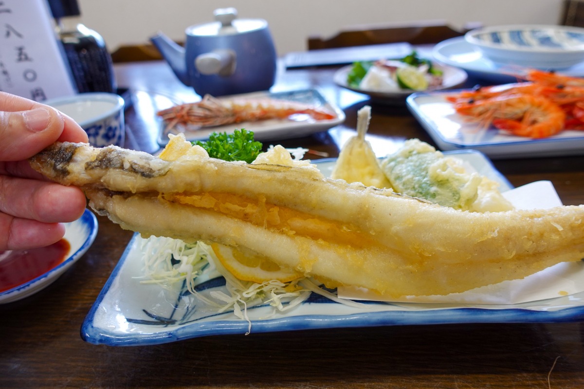 茹でエビや、焼いたエビも美味しいですが、夢中になって食べたのは、このアナゴの一本揚げ。サクサクでアナゴの旨みたっぷりです。