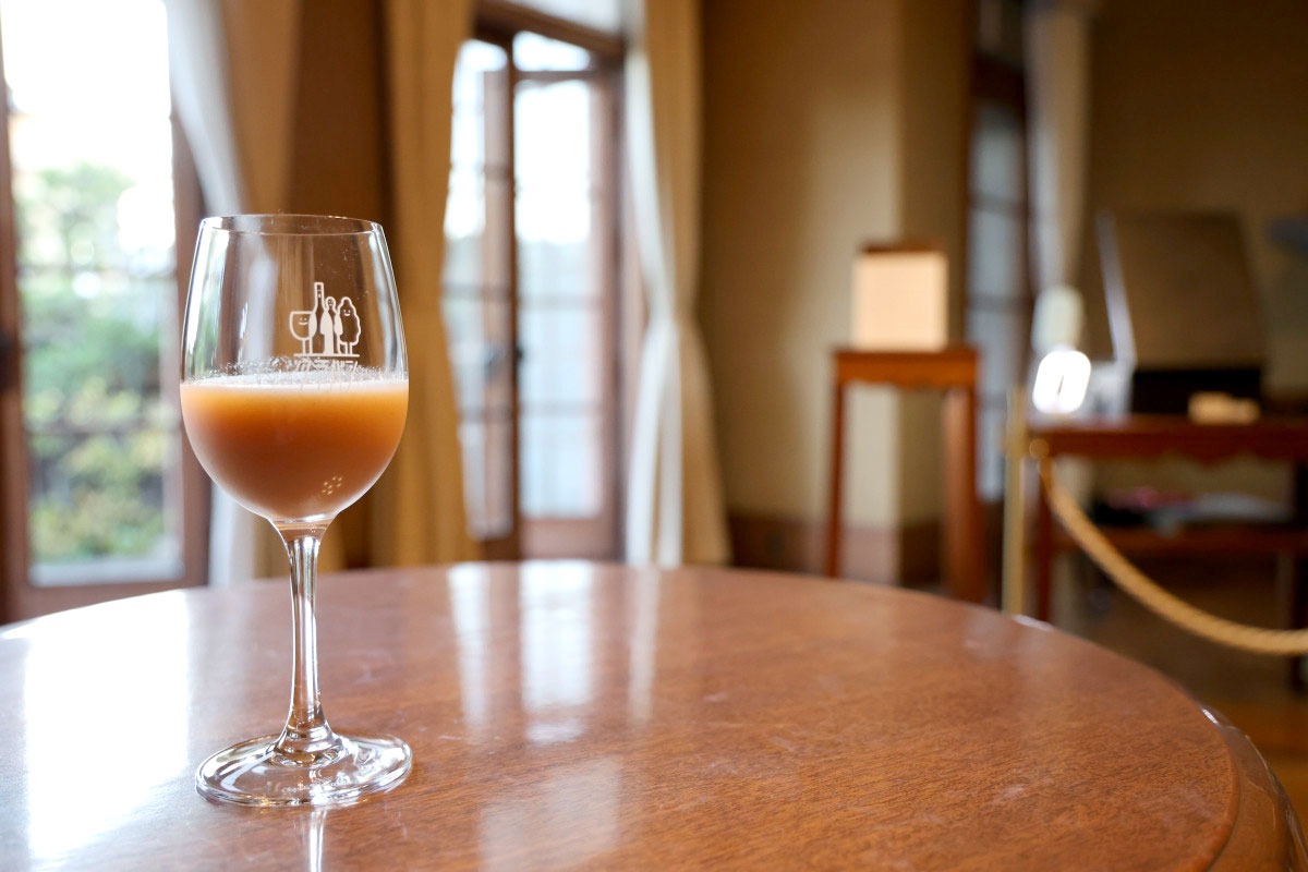 ここでウエルカムドリンクを選びます。アルコールのオーガニック白ワインか、domaine tettaの岡山県産葡萄ジュースのどちらかで、私は葡萄ジュースにしました。