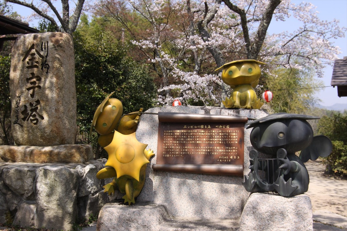 町のカッパの伝説にちなんで、マスコットキャラクターは「幸福を呼ぶエンゼルかっぱ」。川柳公園には像もあります。また、2017年4月にリニューアルオープンした町内の道の駅は「かっぱの杜」と呼ばれ、表にはカッパ大明神が鎮座しています。
