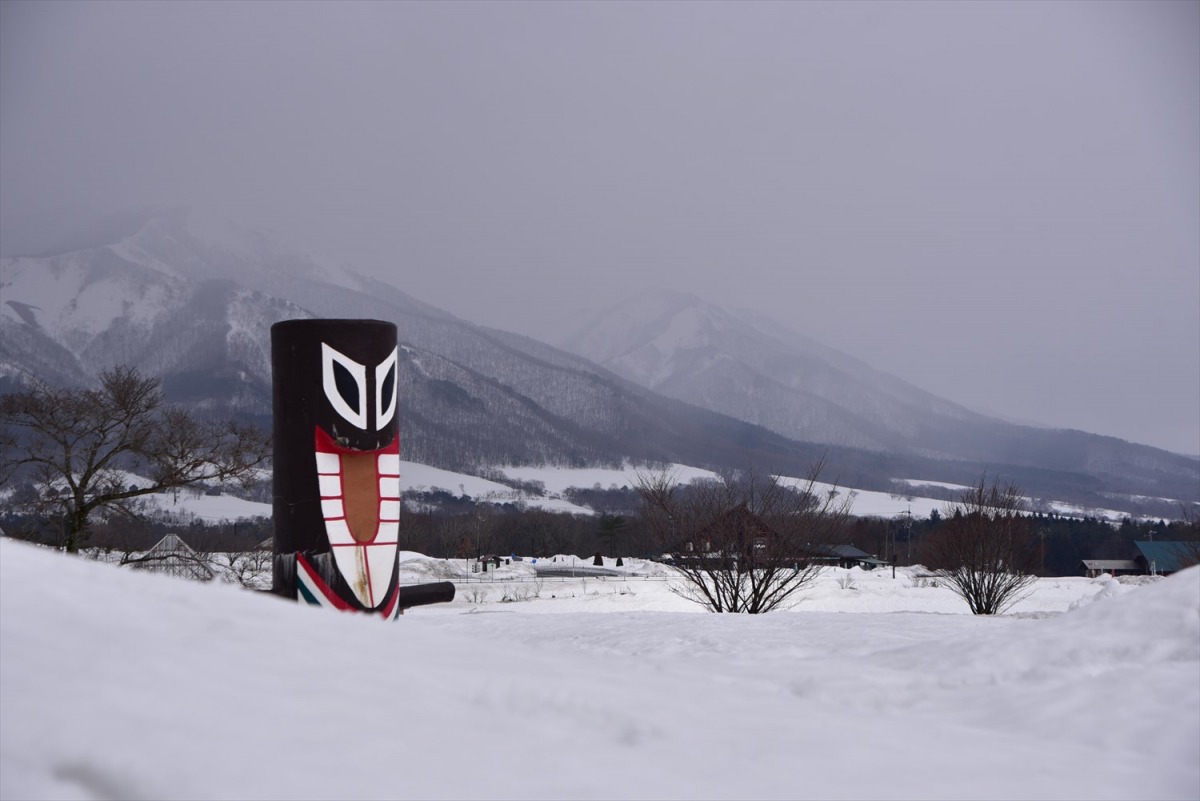 人の考えていることが分かり、悪いことを企んでいると、スイーと現れ一本足でトンと立つ妖怪「スイトン」。悪いことを考えた人は、たちまち引き裂かれ食べられてしまうので、蒜山には悪人がいないそうです。蒜山高原の色んな場所にスイトンのトーテムポールが立っています。