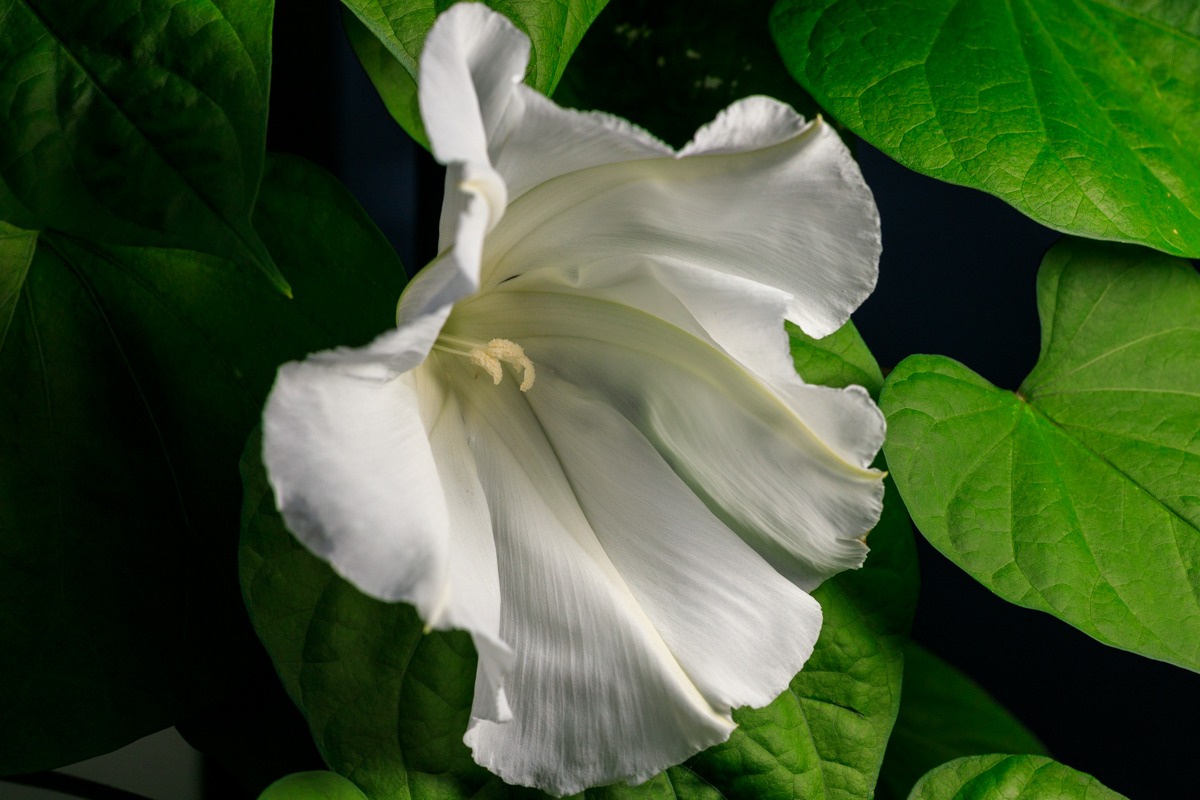 こちらはヨルガオです。意外なことに、ユウガオとヨルガオは別の種類で、ユウガオはウリ科、ヨルガオはさつまいも科です