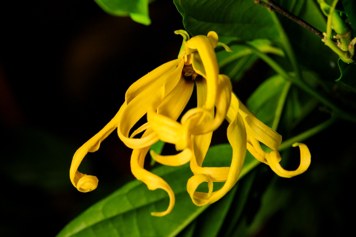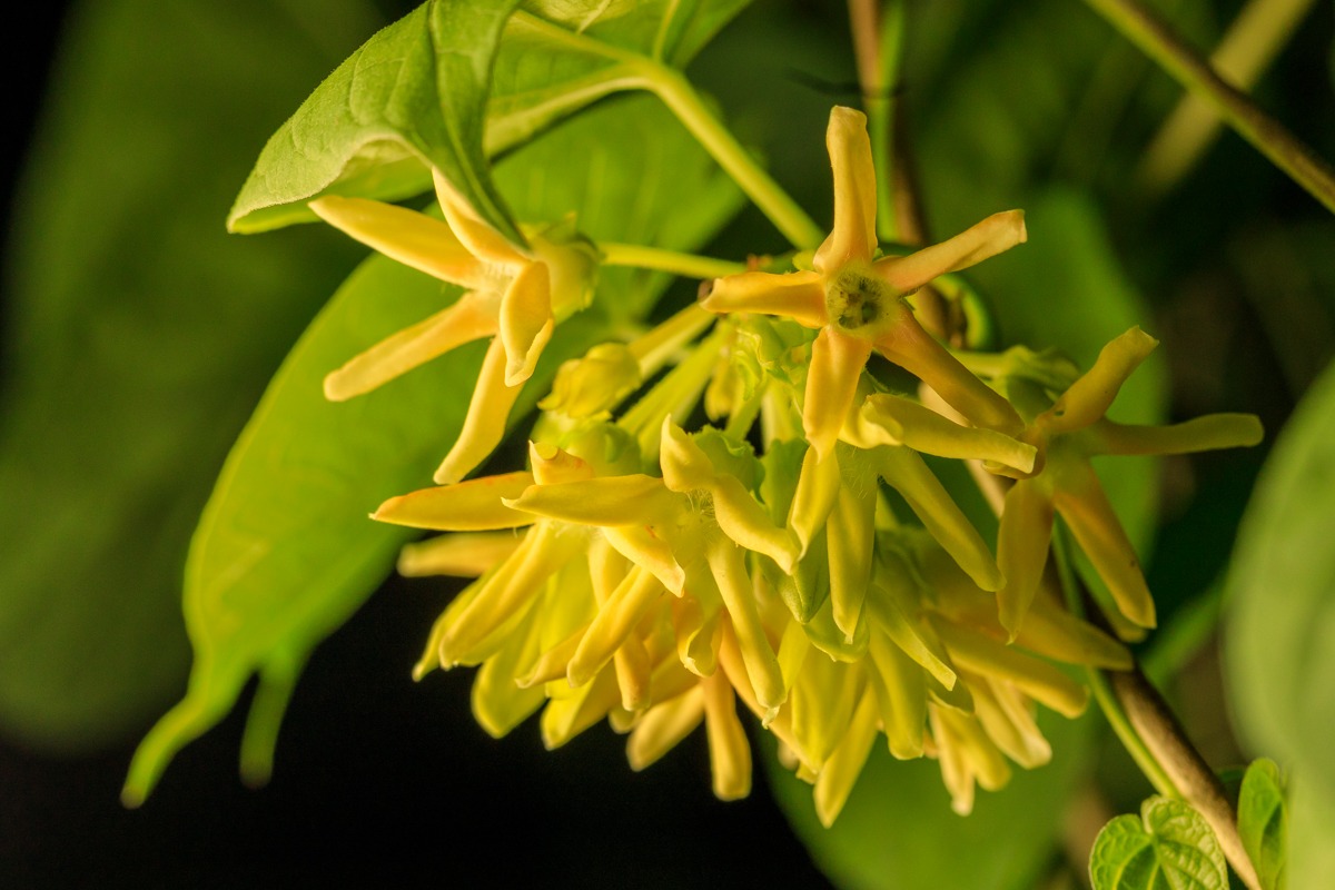 イランイランは昼間も咲くのですが、 昼間は香りがほとんどせず、 夜になると香りがとても強くなります。夜の虫を呼ぶためです。