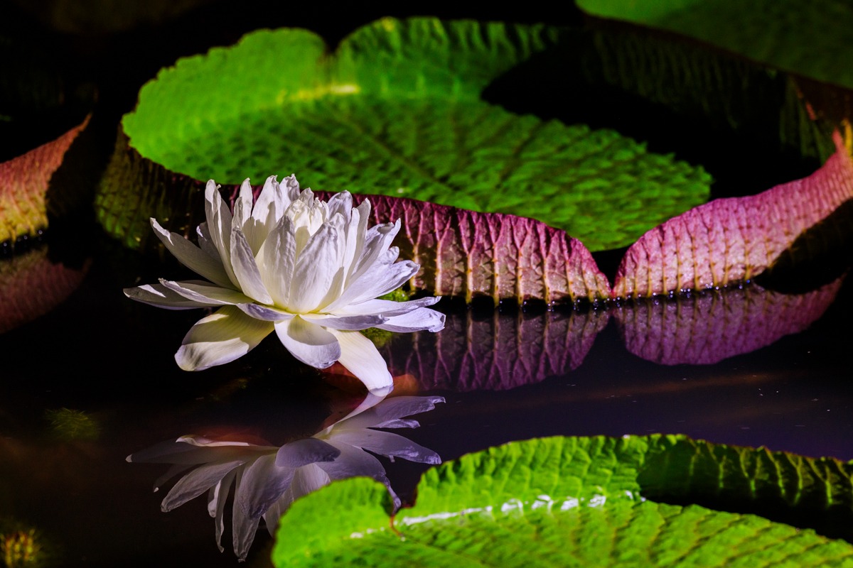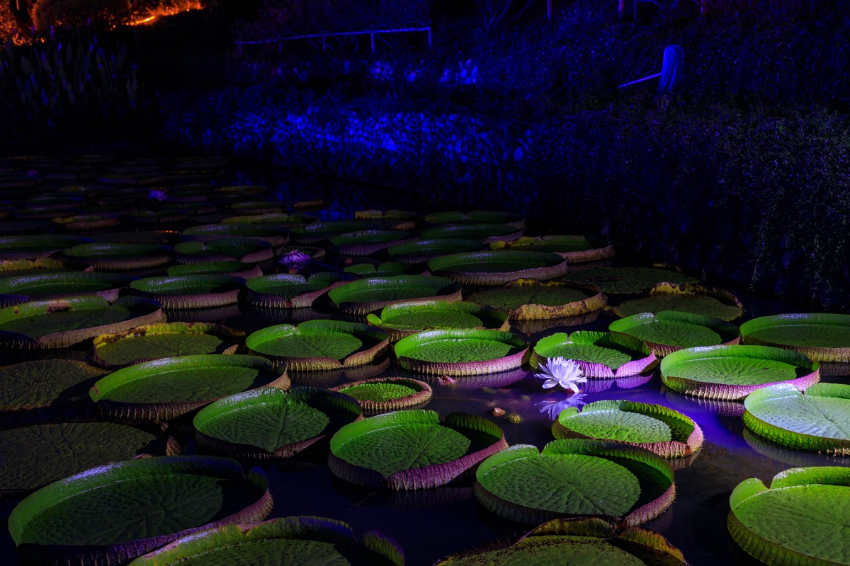 ナイトガーデンの一番の見所、パラグアイオオオニバスの開花の様子を見てから実際の植物を見ると、より感動するので、是非ご覧になってから 園内を回ることをおすすめします。