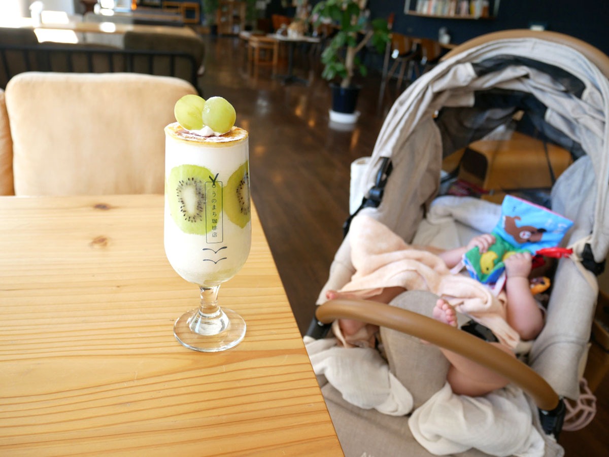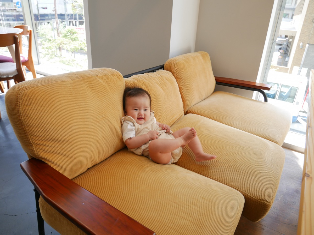 ベビーもゆったりとくつろいでいます。店内に流れている音楽が心地よくて、お昼寝もしてくれました。