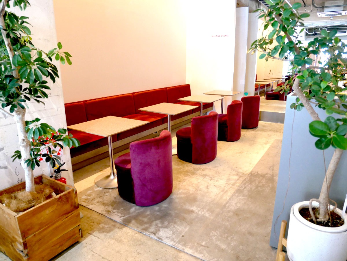 ワインレッドのチェアが印象的な洗練された店内。隣接する美容院の系列店なので、センスが良いのも納得です。ニューヨークテイストの店内では、日本離れしたインパクトのあるケーキやドリンクを楽しめます。もちろんお子さまウェルカムなお店です。