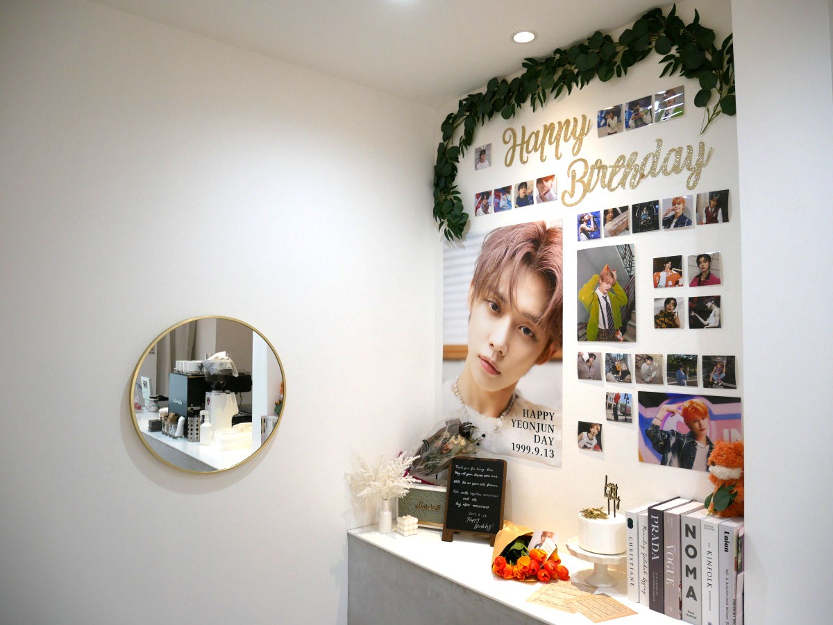 この日は、K-POPアイドルの方のバースデーイベントでした。カフェで推しメンの誕生日をお祝いできるのも嬉しいですね。