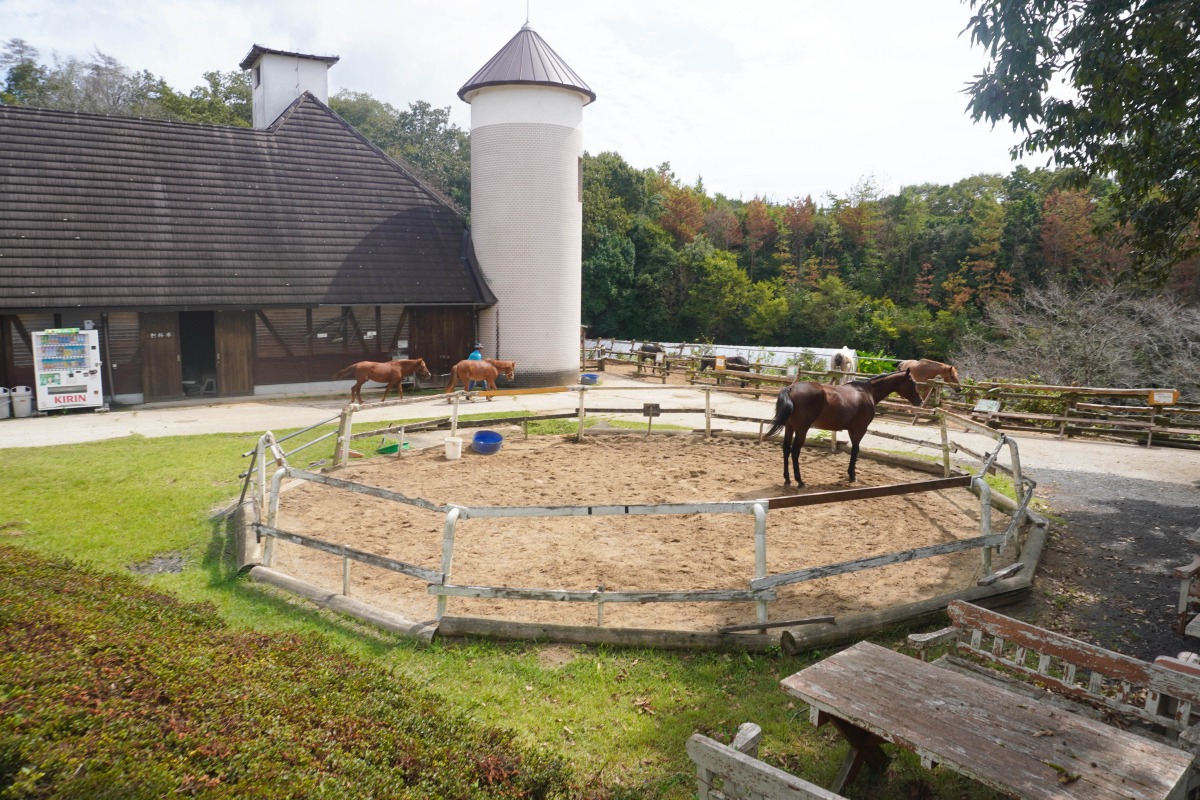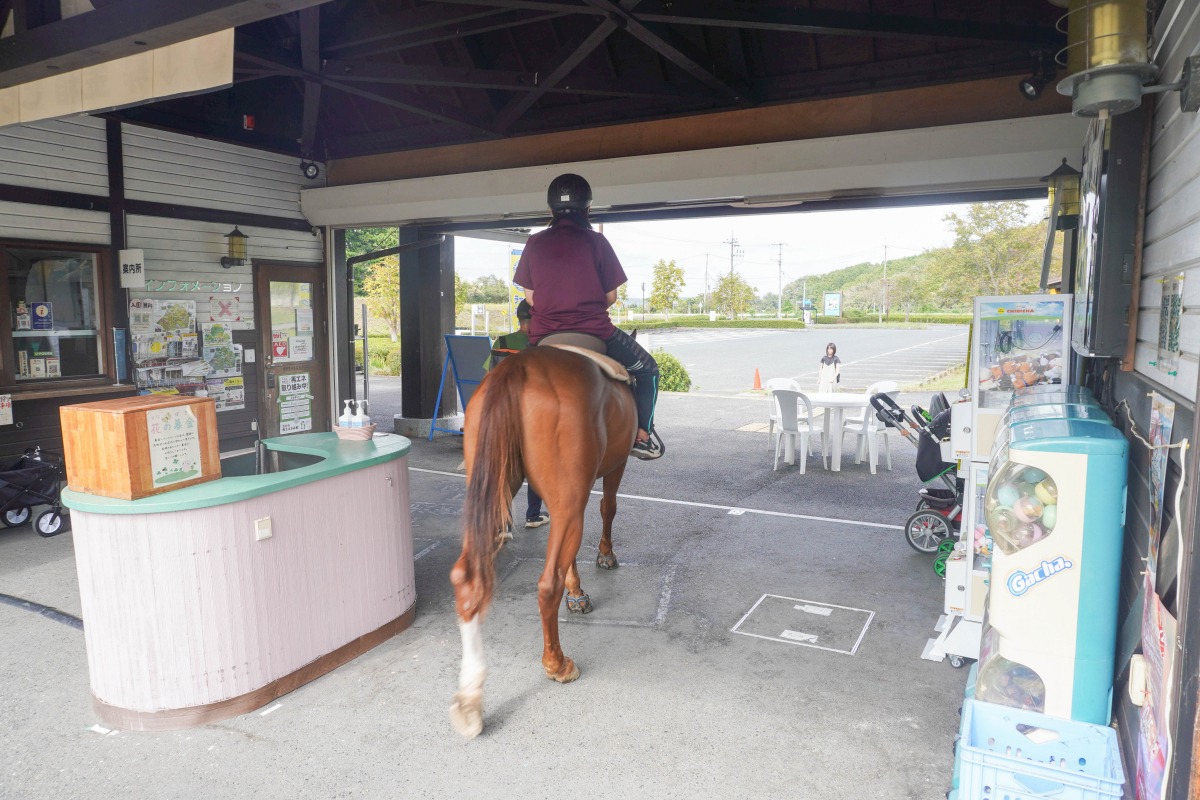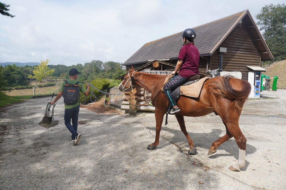 勝央町にある「おかやまファーマーズマーケット・ノースヴィレッジ」内の乗馬クラブ「にんにんホーススクール」で、乗馬とマスカット収穫を組み合わせたユニークなプログラム「ぶどうトレッキング」を体験してきました。