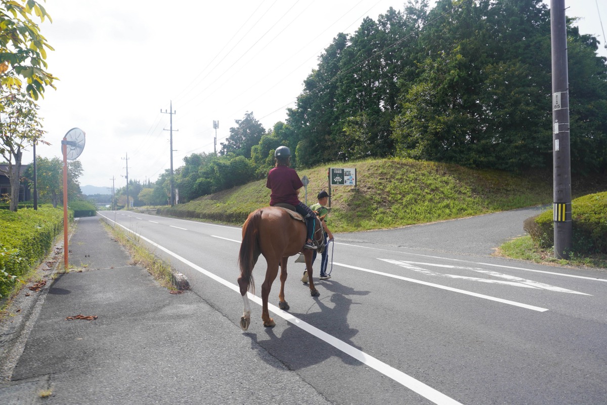 馬にまたがれば、後はほぼ馬に身を任せるだけ。スタッフの方の先導でゆっくりと歩みを進めます。