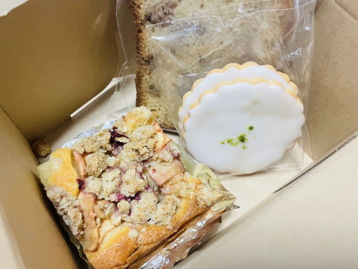 真庭産のいちじくやリンゴを使ったケーキとレモンクッキーを購入。