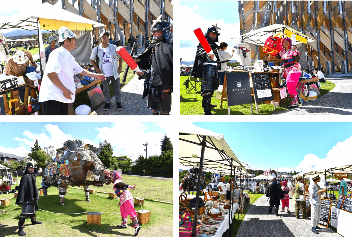 ちょうど我々が行ったとき、海山マルシェという5回目となる人気のイベントが開催中であった。飲食だけでなく、様々なジャンルのお店が出展されておった。見て回るだけで楽しい。そんな中、ユニークなお店を見つけた。手作り感満載の紙やテープでぐるぐる巻きされた工作物が雑多に並べられている。お聞きすると早島にある福祉事業所「ぬかつくるとこ」殿のブースとか。 ここで作られた看板や装飾品を不定期に譲ったり、売ったりしておるお店じゃそうじゃ。