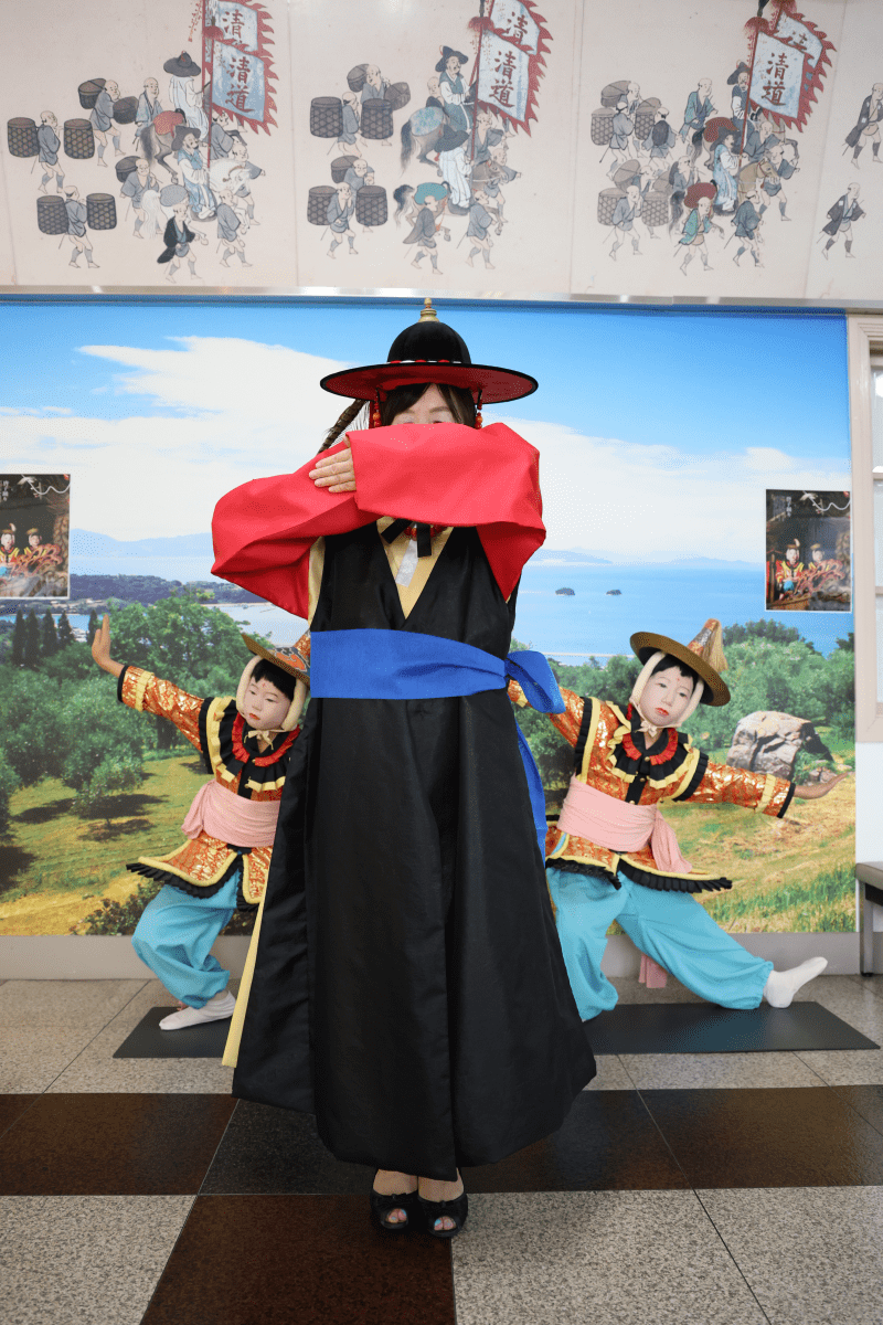 朝鮮通信使の資料や関連する資料の展示も見ることができます。その一角に衣装も展示されています。