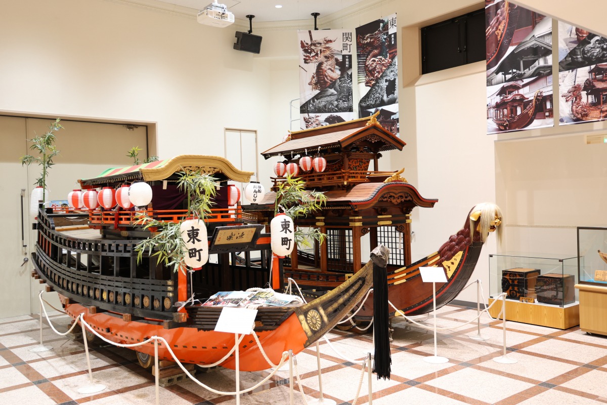 牛窓神社の秋の祭礼では、牛窓の港町がセレモニーやマルシェで県内外からの人で賑わいます。唐獅子や太刀桶が奉納され、御神神輿やだんじりが町をねり歩きます。そのだんじりを展示室で間近に見れます。