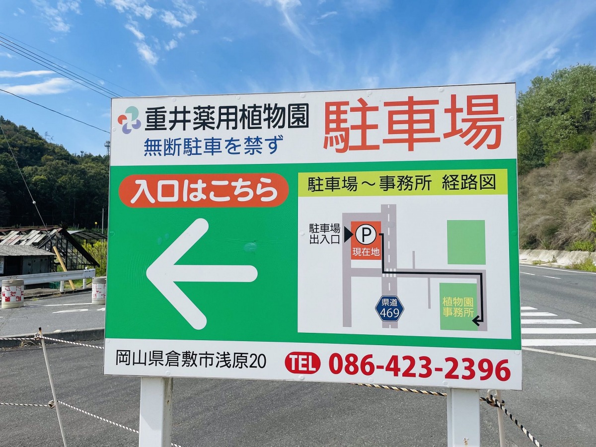 車で行く場合は、倉敷ICより植物園駐車場まで約5分+徒歩3分ほどです。