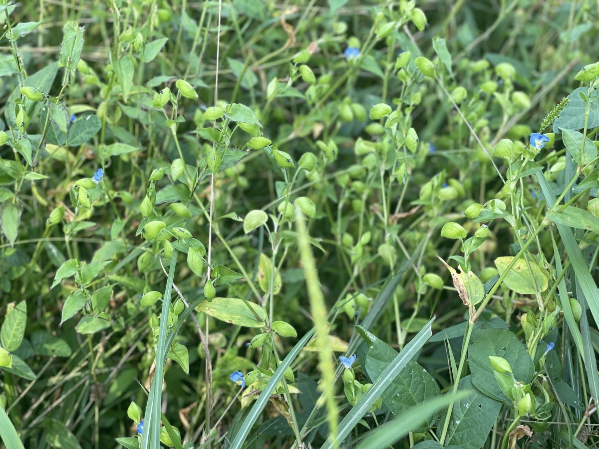 現在見ごろの植物で、絶滅危惧種の「ミズアオイ」。ミズアオイ科ミズアオイ属の植物です。