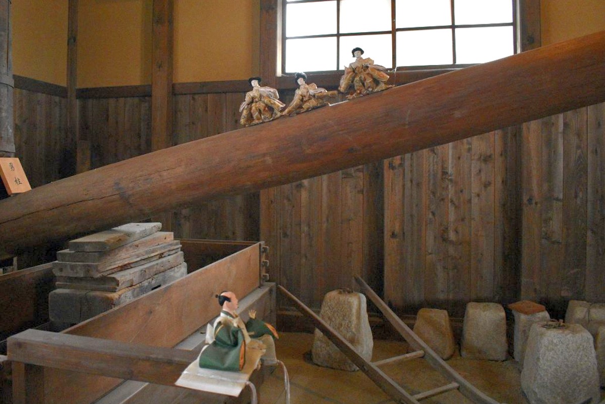 ほのかな醤油の香りにつつまれた蔵の中。柱の上には五人囃子?その下には笑い上戸の仕丁でしょうか。歴史ある城下町で出会える季節限定のコラボレーション。粋なセンスが光っていますよ。