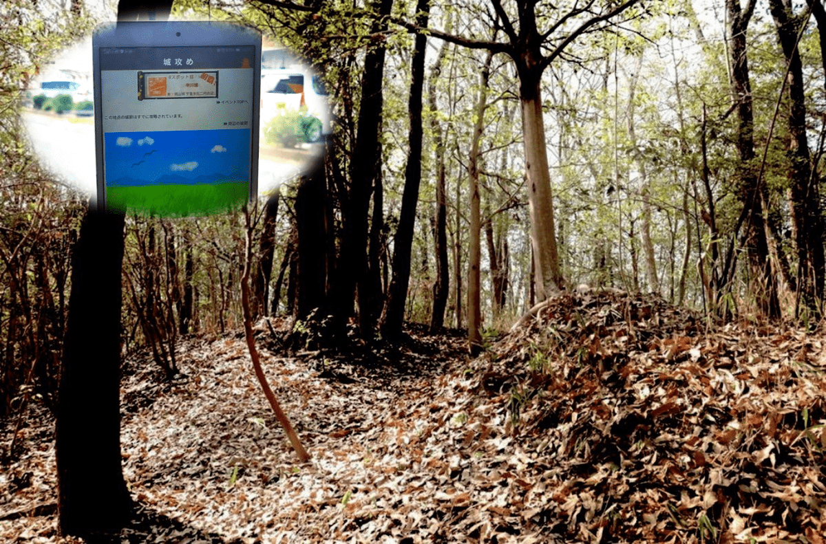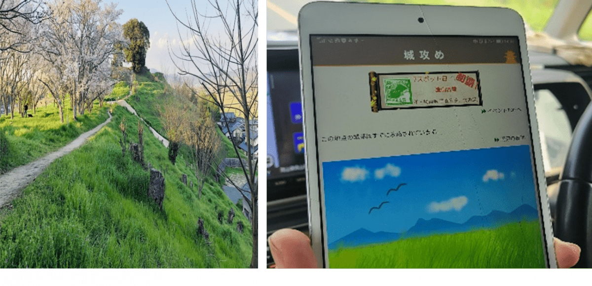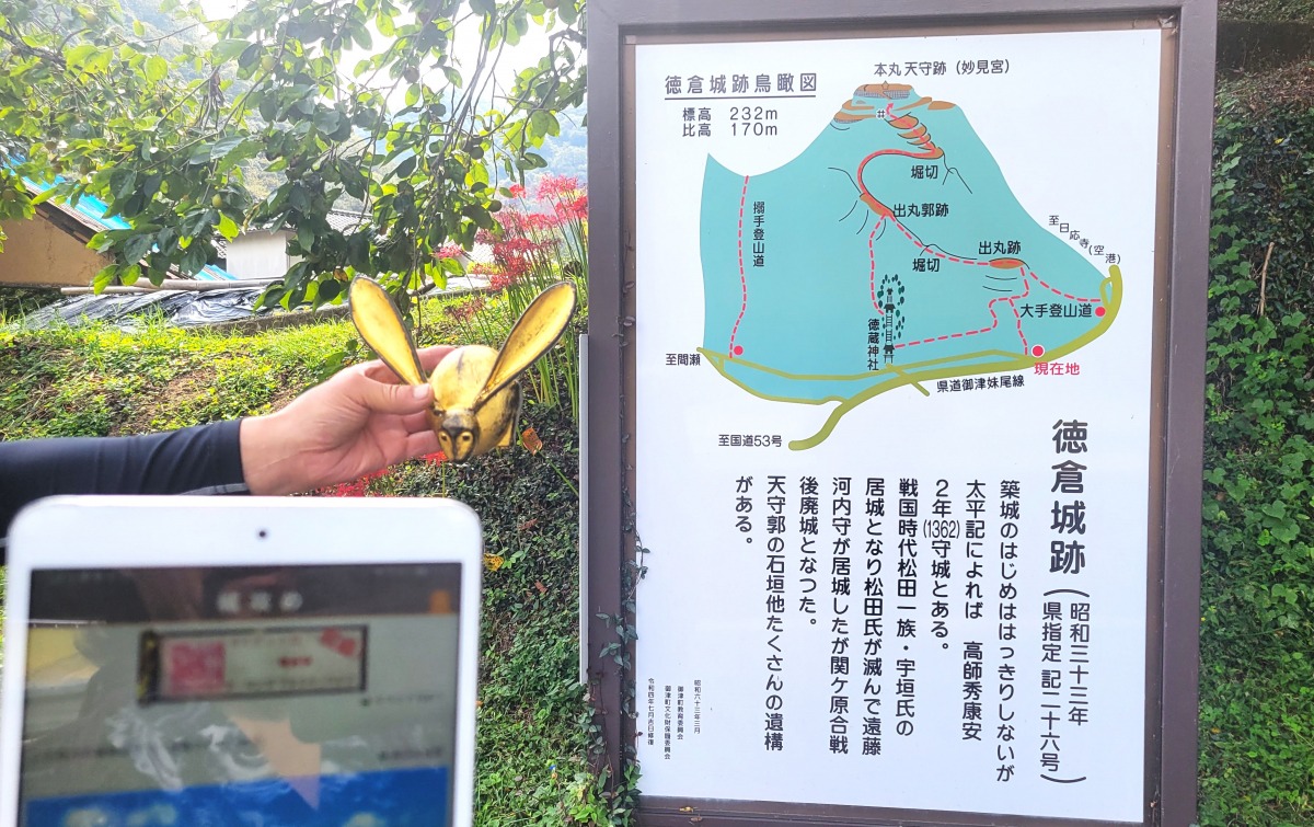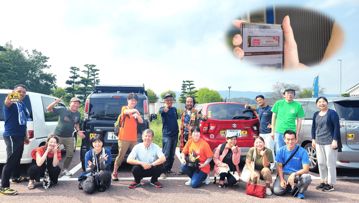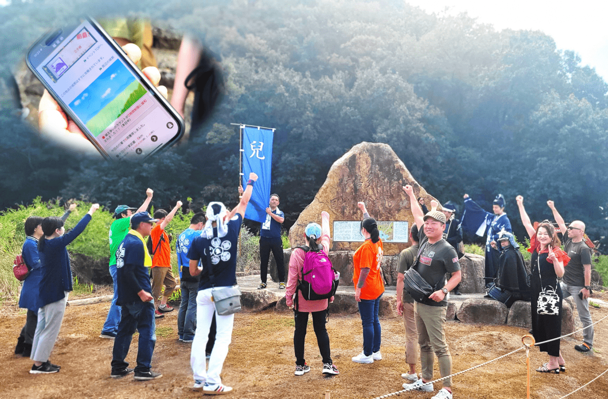早速スマホで位置登録して乙子城をゲット。皆さんコンプリートに向けて気合い十分じゃ!さあ、ツアーの始まりじゃ。戸川秀安は参加者と同行してイベント制覇するようじゃ。