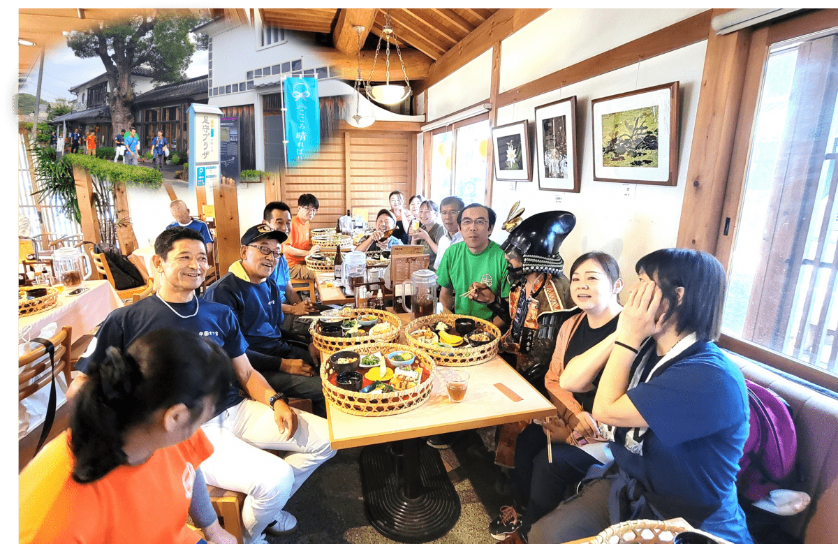 5番目のスポット、足守陣屋はランチを兼ねて足守プラザへ。 おかやま観光コンベンション協会が運営する施設で陶芸や木工芸づくりの体験が出来る。地元産の食材を使ったお食事処洪庵茶屋も隣接しておる。我々はこちらで特別メニュー足守御膳を予約しておいた。 デザートには足守の特産品である足守メロンも付いておってとても美味じゃった。