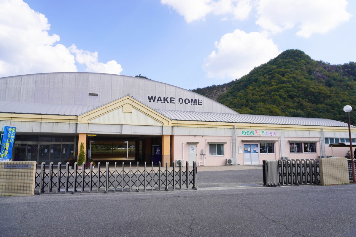 白い大きな屋根の和気ドームが目印です。
