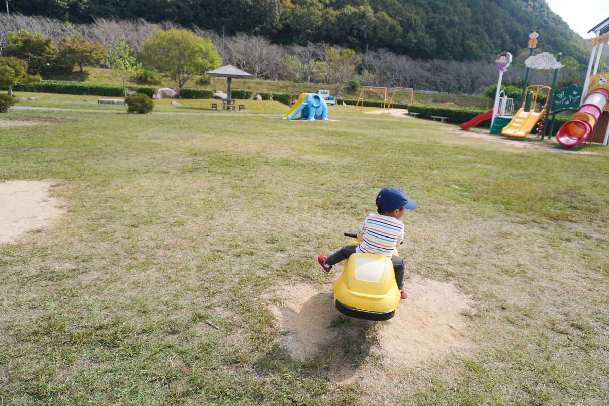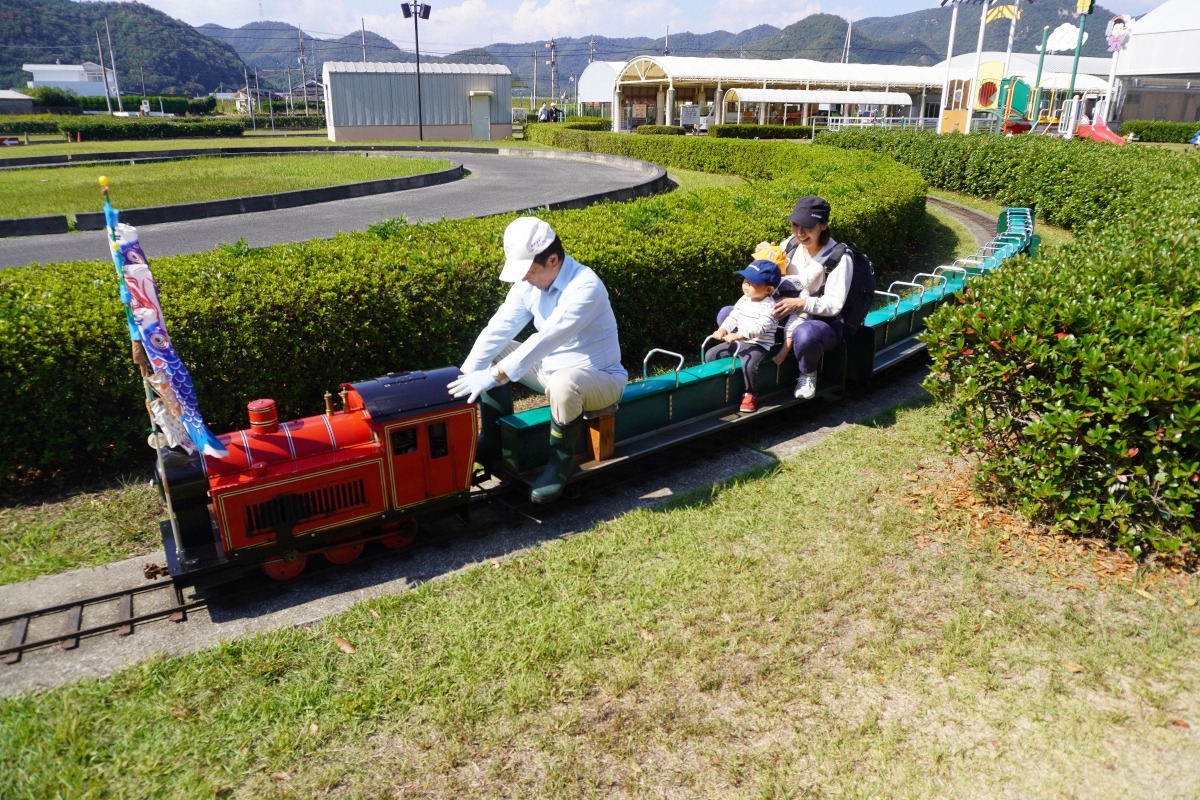 和気町にある「わけまろパーク」。子ども広場、遊具、ミニSL、ゴーカートなど子どもたちが楽しめる設備が充実しています。