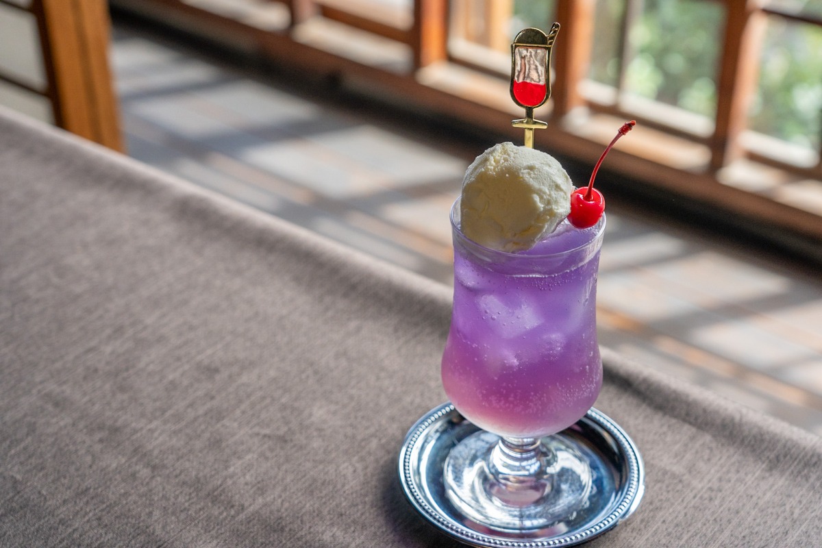 2階はカフェとして利用でき、シロップを注ぐと色が変わる「夢二の夢色クリームソーダ」(700円)など、レトロな雰囲気にぴったりのメニューも楽しめます。