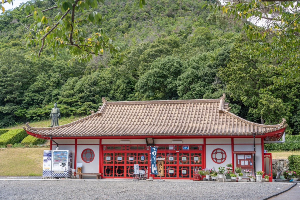 吉備真備公を祀る神社の敷地内にある中国屋敷を再現した建物。美味しいうどんが食べられる店として、地元の人に親しまれています。