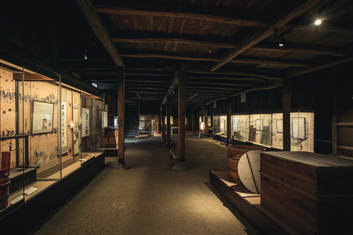 江戸時代に矢掛宿の本陣職を務めた石井家が所有していた建物で、参勤交代で江戸と国元を行き来する大名の宿泊や休憩の場として利用されていました。約1,000坪の敷地には、上段の間を備えた御座敷、御成門などの迎客施設、家人の生活の場や家業の酒造業を営むための主屋、内倉、酒倉、西倉などが建っており、往時の姿を見ることができます。米蔵はギャラリーとして活用されており、歴史的資料が展示されています。