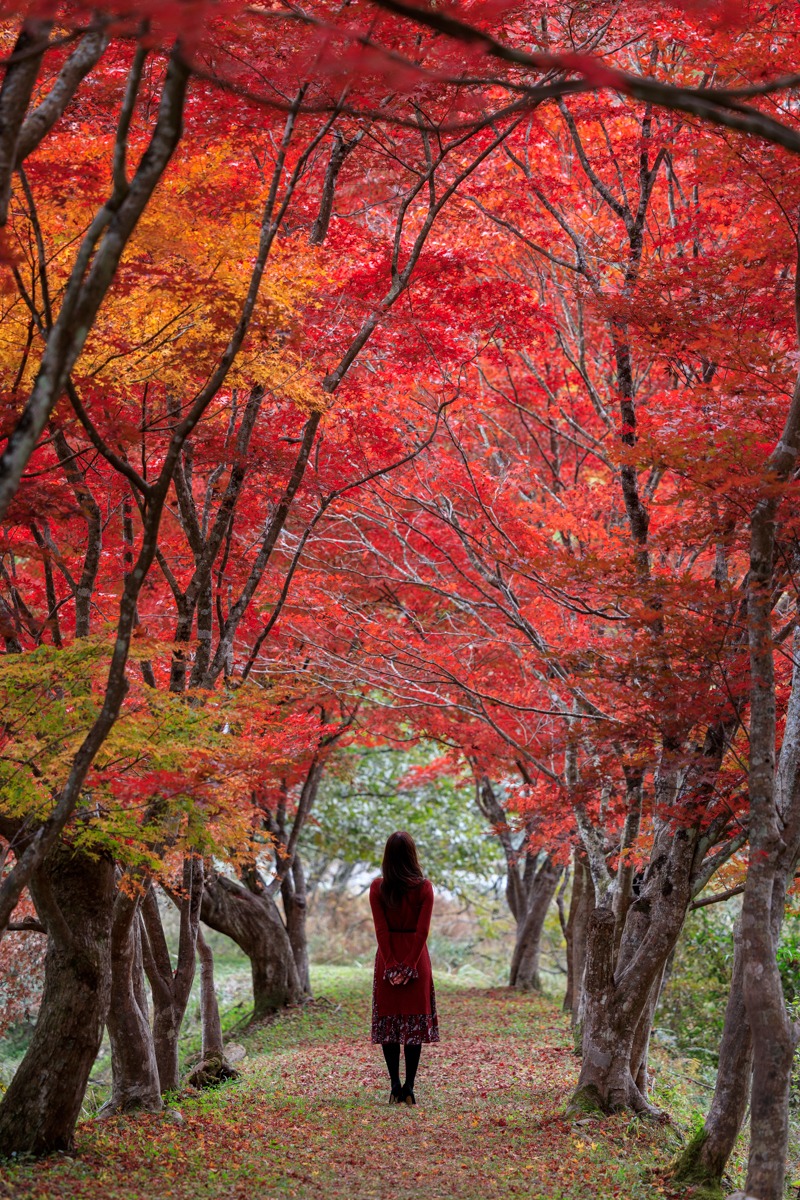 両側からモミジが包み込むような、そんな温かい風景が撮影できます。